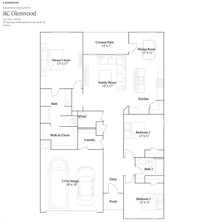 The gorgeous Glenwood plan is full of curb appeal with its welcoming front porch and front yard landscaping. This one-story ranch-style home (slab on grade - no basement) features an open floor plan with 3 bedrooms, 2 bathrooms, and an expansive family room. Also enjoy a cozy breakfast/dining area, and a beautiful kitchen equipped with energy-efficient stainless-steel appliances, generous counter space, and roomy pantry. Plus, a wonderful covered back patio for entertaining and relaxing. Photos are of a previously sold model. Color selections, finishes, and options will vary.