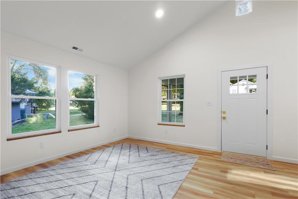 Welcome to this STUNNING 3-bedroom, 1-bathroom new construction home located on a newly developed street in Osawatomie, surrounded by a neighborhood full of exciting growth with new homes and remodels. Step inside to an open concept design featuring tall, vaulted ceilings, stone countertops, and custom pre-finished cabinetry. Every detail has been thoughtfully designed including upgraded LVP flooring, premium doors, custom wood windowsills that add warmth and character. Laundry is conveniently located right off the kitchen for everyday ease. This home offers true zero-entry living from the front with no steps, making it highly accessible. Rooms are spacious with large closets; HVAC has been upgraded from a traditional builder grade system to a more efficient system. Off the back, enjoy a spacious deck perfect for relaxing or entertaining, along with dedicated parking and a large, oversized shed for all your storage needs. The efficient floor plan provides a highly functional layout while still feeling bright and spacious. Just blocks away from the O Zone Fitness Center, Osawatomie High School, John Brown Park, Ball Fields, Tennis Courts and Outdoor Basketball, this home combines comfort, convenience, and modern style in an ideal location. Don't miss the opportunity to own a brand-new home in a community on the rise!
