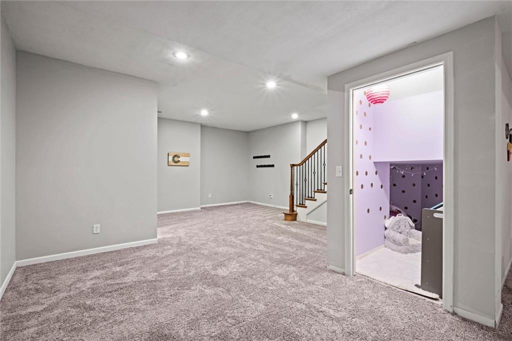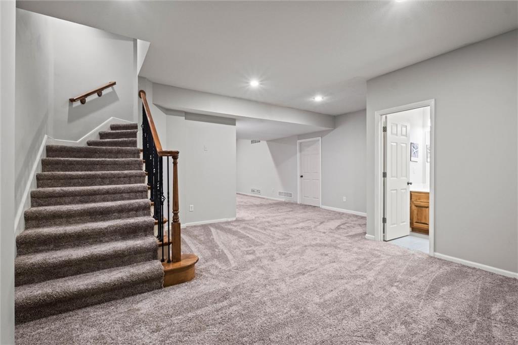 Buyer got cold feet—now this pre-inspected home is ready for your buyer! Welcome to this stunning 4-bed, 4.5-bath home nestled on a quiet cul-de-sac in the highly sought-after Blue Valley School District. Thoughtfully updated and beautifully maintained, this home offers exceptional comfort, style, and functionality throughout. The main level features an updated kitchen with a walk-in pantry, gas range, and modern finishes—perfect for daily living and effortless entertaining. Step outside to a brand-new composite deck overlooking a large backyard, ideal for relaxing or hosting. Upstairs, all bedrooms are generously sized, and the convenient upstairs laundry adds ease to your routine. The luxurious primary suite boasts a heated bathroom floor, an updated spa-like bath, and a relaxing steam shower. New windows and new carpet throughout the home provide added efficiency and comfort. The finished basement expands your living space with a dedicated media room, perfect for movie nights or gaming. Major upgrades include a new HVAC system (2019) and a 50-year high-impact shingle roof, offering long-term durability and peace of mind. Located in a vibrant community with exceptional amenities—pool, playground, community trail, and an HOA-stocked fishing pond—this home offers both convenience and recreation. With modern updates, spacious living areas, and a pre-inspection already completed, this move-in-ready home is truly prepared for its next owner—don’t miss this opportunity!A