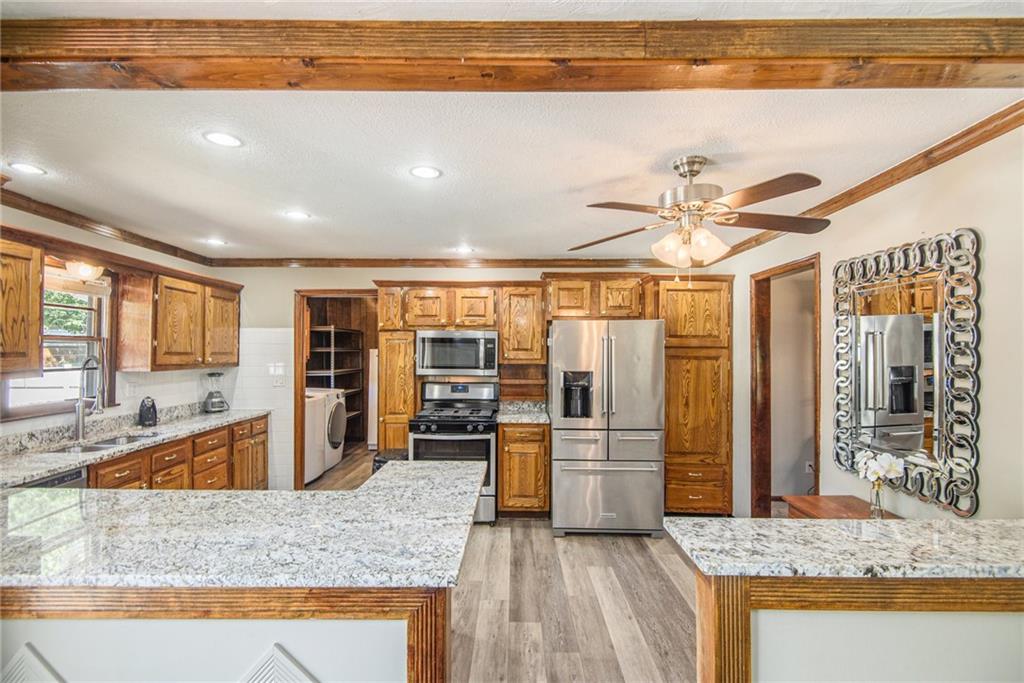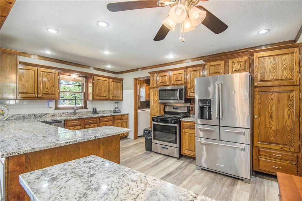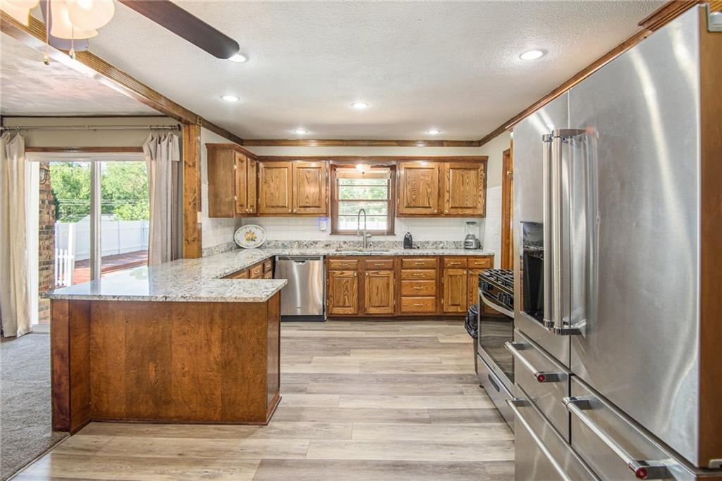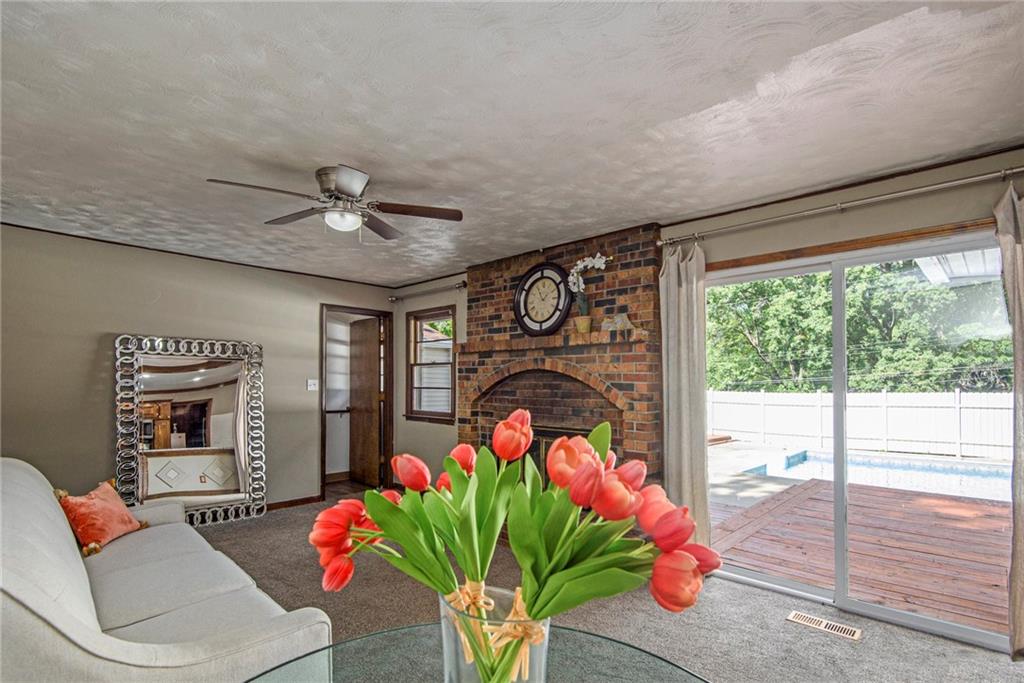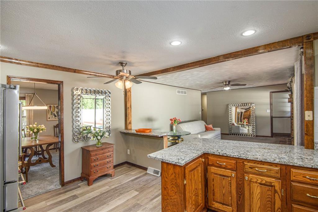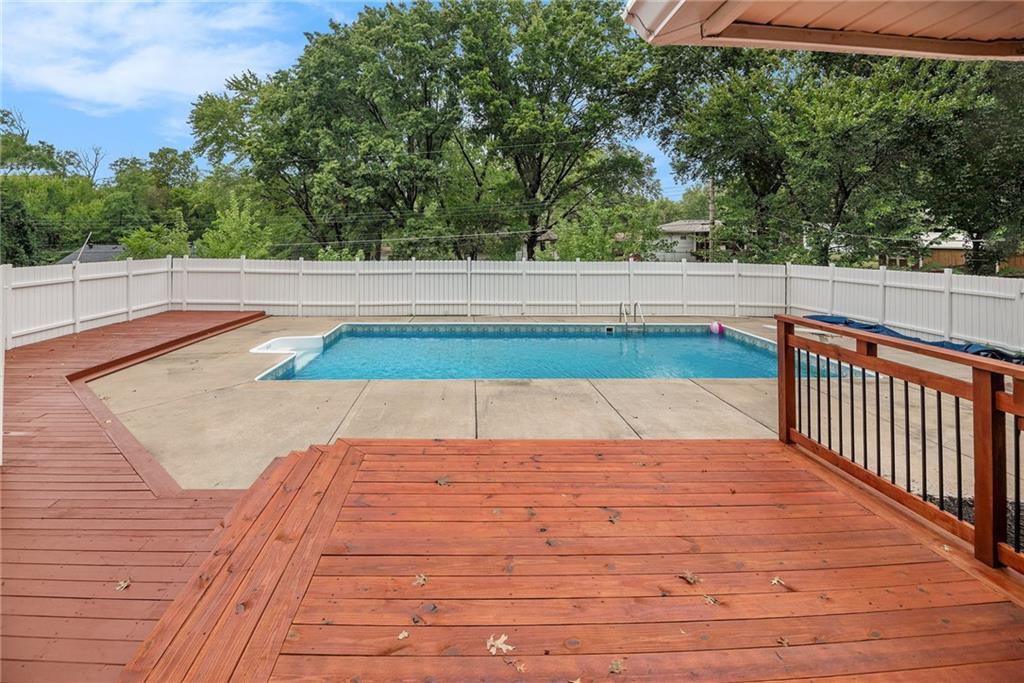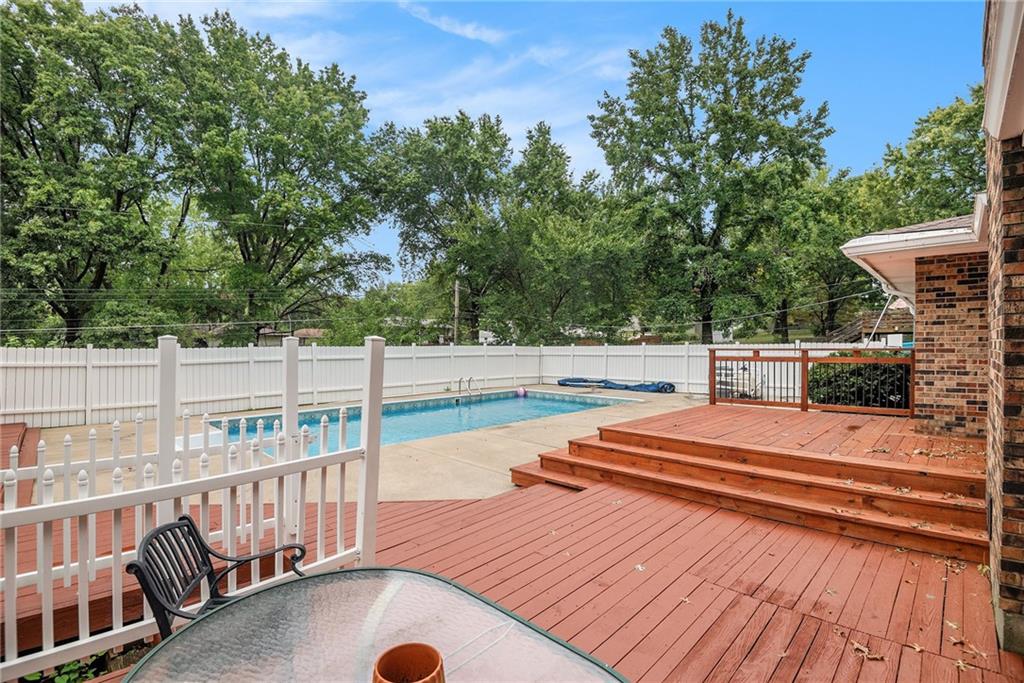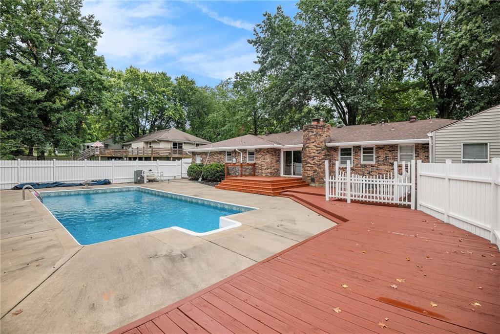 Gorgeous Brick Ranch on a quiet street; Lots of room here, and a Backyard Oasis! Everything you need on the Main level with 3 Bedrooms, 2 Full Baths and one 1/2 Bath. The Master bedroom On Suite includes a large sitting room. Bedroom #2 has a brand new 1/2 Bath with Walkin Shower, Formal Living and Dining rooms, gourmet kitchen with tons of cabinets and granite! The cozy Den has a Fireplace and walkout to the swimming pool, where new pool decking sparkles. The Pool and backyard is gated and private. The 1st floor also includes a spacious laundry room and garage access. Now wait, there's more; the unexpected Lower level is anyone's dream; ginormous living space with new LVP flooring, a full bath, a Fireplace, a huge wet bar, and access to the lower garage and tons of storage; perfect for a mother in law's suite or teens crash pad! Great schools and a superior location to get anywhere; Barry Road to the Kansas City airport or Zone Rosa to downtown, Parkville or anywhere east or west. This house is ready for you with new carpet, all new paint, new HVAC and recent roof and gutters, a newly poured garage floor, and a beautiful new half bath as well. Finishing touches include: Newly cleaned sparking windows, and fresh landscaping including tailored bushes. The freshly painted garage has accessible storage above. Great property; Don't miss this Northland Gem! Come for a swim!
