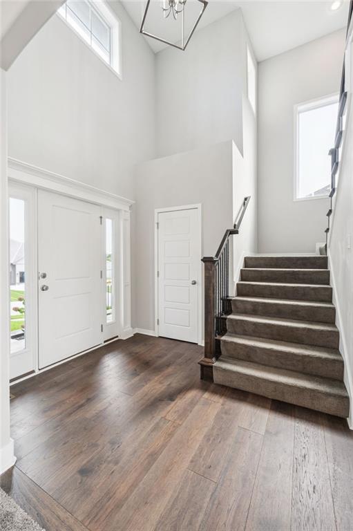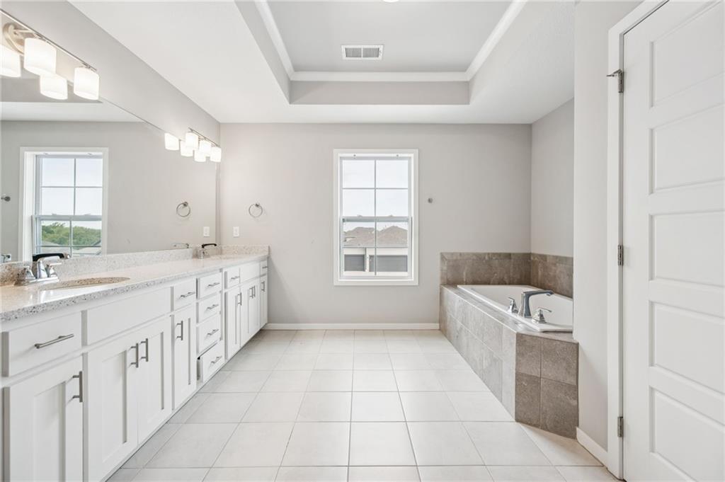 Prieb’s Paxton III is a beautifully designed two-story home offering 5 bedrooms and 4 full bathrooms, ideal for families of all sizes. The home features vaulted ceilings in the bedrooms and an open-concept layout that’s perfect for entertaining. The kitchen is a chef’s dream, with a large island with seating, apron sink, stainless steel appliances, and a walk-in pantry. Upstairs, a hallway with built-in bookshelves leads to a spacious master suite with double doors, a walk-in closet with direct access to the laundry room, and a luxurious master bathroom featuring a soaking tub, double vanity, and an expansive walk-in tile shower. Each secondary bedroom has private access to a bathroom, offering comfort and privacy. On the main floor, a flex room can serve as an office or fifth bedroom, conveniently located next to a full bathroom. The home also includes a mudroom with a boot bench, a sprinkler system, and a full basement that’s stubbed for a ¾ bath, offering potential for future expansion. This home seamlessly blends style, function, and comfort, making it a must-see for any family.