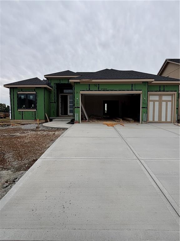 MODEL HOME NOT FOR SALE. The Contemporary "Bayberry I" by JFE Construction is here! This 4 bed 3 bath Reverse is on a level Lot. As you enter through the double doors to the grand foyer you are greeted by incredible natural light pouring in to the Great Room windows. The vaulted Great Room has a cozy fireplace and leads out to the covered deck with yet another fireplace! The kitchen has a large island, ample counter and cabinet space with a walk-in coffee bar counter leading into the walk-in pantry. A mudroom boot bench off the garage interior entry. The Primary En-Suite has a box-vault ceiling, amazing windows leading into the bathroom with double vanity, standalone tub, walkin closet and tiled shower with seat. Main level laundry room next to the Primary Bath. Bedroom #2 or office, next to a full bathroom #2 with shower. The Lower Level boasts a luxurious Family Room with a walkout to the back yard to even more outdoor living. Entertaining in the Lower Level is equipped with a Wet Bar, Island/Bar all with ample windows to let all the light in! All in the coveted Heritage Ranch, A Lambie-Rieke Community, with Amenities Galore such as state-of-the-art pool, clubhouse, trails, pickleball. play area, half-court basketball, Putting Green & ponds and so much more coming soon! This community provides a wonderful lifestyle and right next to the 1,238 Acre Heritage Park with Dog Park, Sports Parks, Golf, Lake, Trails and so much more! Contact Onsite Agents for Estimated Completion of homes on site, and design selections. Our Welcome Center Office is now open, located at LOT 65. Open 7 days a week! Renderings &/or images may show features and sq ft that are subject to change. Welcome Home to Heritage Ranch - one of the last NEW Home Communities in Johnson County! HOME is Under Construction with an Estimated Completion JAN 2025 on LOT 60.