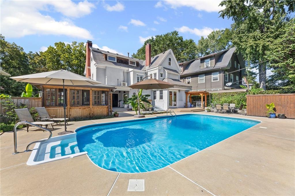 LARGE REDUCTION, Let's get this one under contract before Christmas!! This stunning 3-story Central Hyde Park home perfectly blends historic character with modern comfort. Architectural details have been thoughtfully preserved, including original millwork, oak and fir hardwoods, walnut doors, and built-ins, while quality updates make the home ideal for today’s lifestyle. The main floor welcomes you with a formal dining room and a sunlit living room featuring a wood-burning fireplace with forced air insert. The fully remodeled kitchen is a showstopper, boasting a 7-foot island, granite countertops, stainless steel Thermador gas range, built-in convection oven and microwave, custom red oak cabinetry, and an oversized 11’ x 7’ butler’s pantry. Upstairs, the spacious primary suite includes a massive 15’ x 6’ walk-in closet, alongside two additional large bedrooms and full baths. The third floor offers incredible flexibility with a private apartment with two bedrooms, full bath, kitchen, and its own entry; ideal for guests, or rental income. Step outside to your own private oasis. The beautifully landscaped backyard is designed for entertaining with a sparkling in-ground pool, a wide wrap-around veranda, multiple lounge areas, composite decking, a Premier Pro-Tall Tuff Shed with loft, and a custom-built “tub house” complete with hot tub. Modern upgrades enhance the home’s comfort and efficiency, including newer windows, zoned HVAC, dual water heaters, a security system, gated driveway, and a full walk-up basement with abundant storage. This home truly offers the best of both worlds, historic elegance and modern living in one of the city’s most desirable neighborhoods
