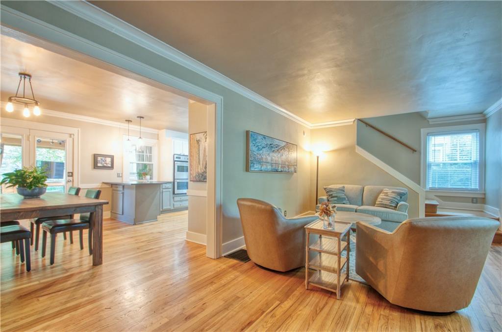 Contingency buyer couldn't sell so come shop for the holidays! THREE (3) story home in vibrant Brookside with flexible living spaces. Updated open concept kitchen with convenient main level half bath. 2nd floor features 2 bedrooms, a fully updated bath with skylight, PLUS a laundry room/storage. 3rd floor primary suite with vaulted ceiling and skylight, or an office/art studio, yoga room or playroom. Great BONUS space and versatile! FABULOUS outdoor living space for casual dining and TV watching. Gather with family and friends with easy access through the French doors to the dining/kitchen area. Fully fenced yard and mature landscaping. Some finished space in lower level with a small den and bonus space with a non-conforming bedroom or office. New exterior paint 2022, New concrete front steps, Roof 3 yrs old, newer windows 2020, kitchen fridge and washer/dryer stay. A couple block walk to Arbor Villa Park with playground, pickleball/tennis courts and green space for the pups. The Trolley Track Trail will take you into the Brookside shops and eateries. Hop on the new Street Car that will take you to Union Station and beyond. Your chance to own a home in one of KC’s most walkable neighborhoods! Armour Hills has a very active HOA community! Come live in one of Brookside's most vibrant neighborhoods!