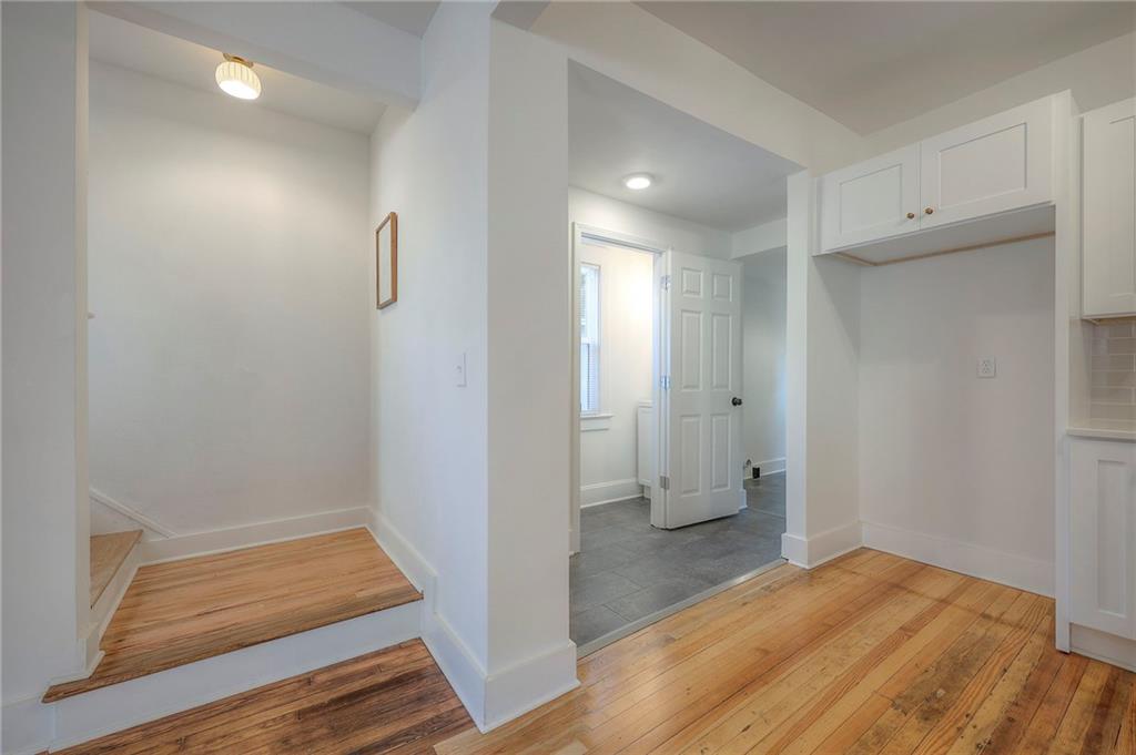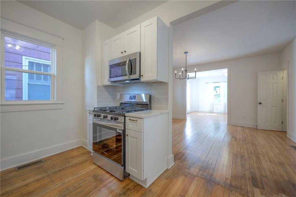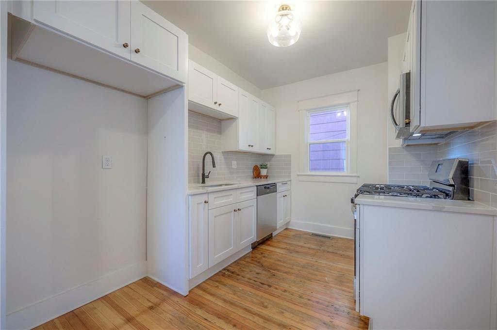 Welcome to this beautifully remodeled, charming bungalow in the heart of Kansas City, Kansas. The covered front porch is perfect for sipping coffee in the morning or unwinding with a cocktail in the afternoon. This charming home features three bedrooms, one half bath on the first floor, and a full bath on the second floor. The living room is perfectly situated for snuggling on the couch for a movie night. The dining room sits right off the kitchen, which is outfitted with stainless-steel appliances, quartz countertops, and solid-wood custom cabinetry. New thermal windows flood the home with light accenting the beautifully refinished hardwoods that flow seamlessly from room to room, enhancing the home's welcoming and functional design. The first floor also hosts the laundry room and a bedroom that could also be used as an office or exercise room. The second floor has a beautifully remodeled full bath and two large bedrooms with over-sized closet space. The large, dry basement provides plenty of room for extra storage as well. The backyard is fully fenced in perfect for entertaining or providing space for the family dog. This home is perfect for those seeking a blend of classic charm and modern convenience. Whether you're a first-time homebuyer or looking for a great investment, this bungalow has everything you need.