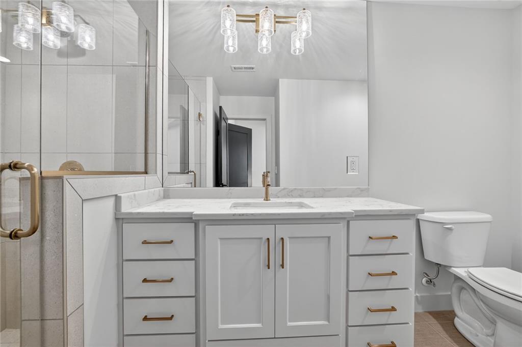 Price Reduction - MOJO Built's functional first-class Modern Farmhouse 2 story floorplan. Plenty of main floor living space with a dedicated dining area and expansive kitchen featuring unique interior and exterior stone features, giving this home more of an elevated feel. All of the MOJO standards are included in this home meaning quartz countertops in the kitchen with soft-close drawers & undercabinet LED lighting, refrigerator included, engineered hardwood floors, a trim package that includes a large base on 1st Floor, large door/window casing, crown molding, wainscoting in the foyer and den, & large base and large window/door casing in Upstairs hallway, and a custom marble fireplace in the living room! Mirrors provided above all bathroom sinks, & wall-to-wall carpeting in basement, in all 2nd floor bedrooms, and runner on staircase. Master bath includes a frameless clear-glass shower door and custom surround for Master Shower with chrome hinges/hardware and undercabinet LED lighting. Quality of construction reflected in drywall with Level 5 ceilings & Level 4 Walls with square corners and flat finish on all ceilings, including the garage, in paint with a flat finish on all walls with eggshell enamel and painted garage walls and ceiling, Exterior finishes with a 30yr composition roof, HVAC w/high-efficiency 96% AFUE gas furnace and 13-SEER AC Unit and Humidifier Included, and in Plumbing & Electrical w/ a 50-Gallon Gas Water Heater, Blanco Kitchen Sink, can lights throughout common areas, and buried 200amp electrical service. **Photos are of another MOJO Built home with a similar floorplan