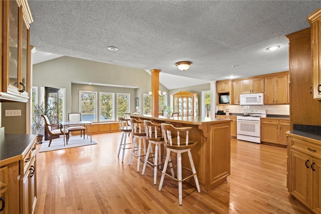 Welcome to a remarkable lakefront sanctuary in Country View Lake, where comfort meets some of the most breathtaking views in the heart of the award-winning Piper school district near the Legends! This spacious 4-bedroom, 2-bath ranch home sits on a beautiful ½-acre lot with direct access to the water, offering the perfect setting for both relaxing and entertaining! Step inside and explore a WELL cared for home that has been thoughtfully updated with a stunning addition providing a beautifully designed vaulted ceiling that floods the home with natural light and showcases panoramic views of the lake from a wall of windows with SO much gathering space! The heart of the home is an expansive kitchen, complete with custom cabinetry, ample counter space, TONS of cabinets, spacious island and a cozy wood-burning pellet stove—perfect for gathering with family and friends. Bring your own personal style to this one with GREAT space to make your own and add your own personal style or updates. Outside, enjoy the serene lakefront setting—ideal for morning coffee, fishing, boating, or simply unwinding while taking in the incredible views. The ½ acre large lot offers room to play, garden, or host summer cookouts, making it a true extension of your living space to easily kayak or fish! With KGUARD leaf free gutter system and other thoughtful improvements where this home recently received a $25,000 transferable investment in professional foundation support, ensuring long-term structural integrity and providing peace of mind for the next owner! This is more than a home, it is a lakefront lifestyle in the heart of Piper where every day feels like a getaway. Easy access to I-435 with the best of city conveniences like KCI International airport, shopping, dining and more! This home is SPECIAL has been extremely well cared by one amazing family who is passing the baton for a new family to start building a lifetime of memories at the lake!
