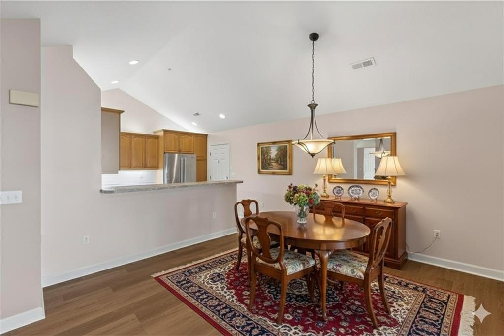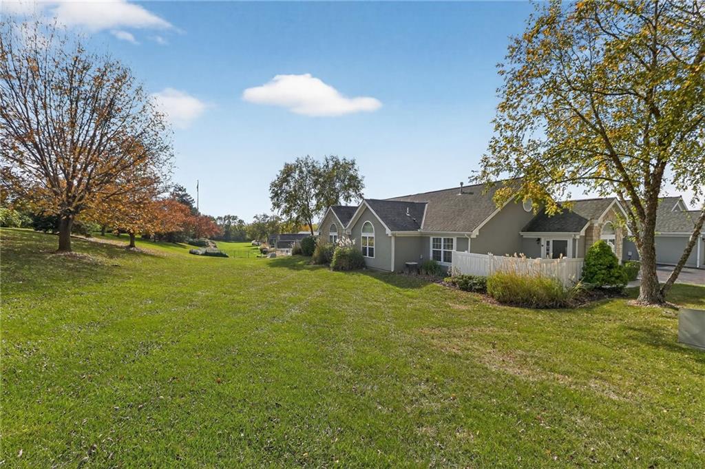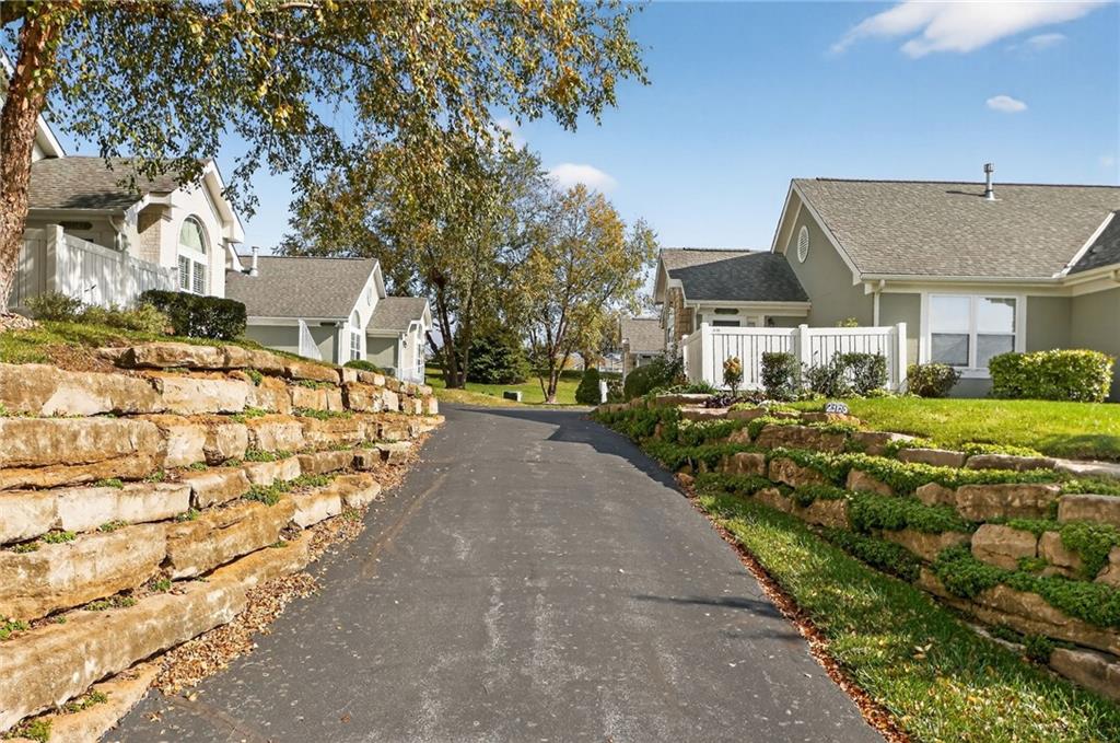 Welcome home to this bright and inviting 2-bedroom, 2-bath villa in the heart of Shawnee. The open floor plan features vaulted ceilings, large windows that fill the space with natural light, and a cozy fireplace in the living room. The kitchen offers plenty of cabinet space, modern appliances, and a breakfast bar overlooking the main living area—perfect for everyday living or entertaining. Both bedrooms are spacious with ample closet storage, and the primary suite includes a double vanity and walk-in shower. Enjoy the convenience of main-level laundry and an attached garage. Located close to shopping, dining, and parks, this home combines comfort and convenience in a quiet, low-maintenance community.
