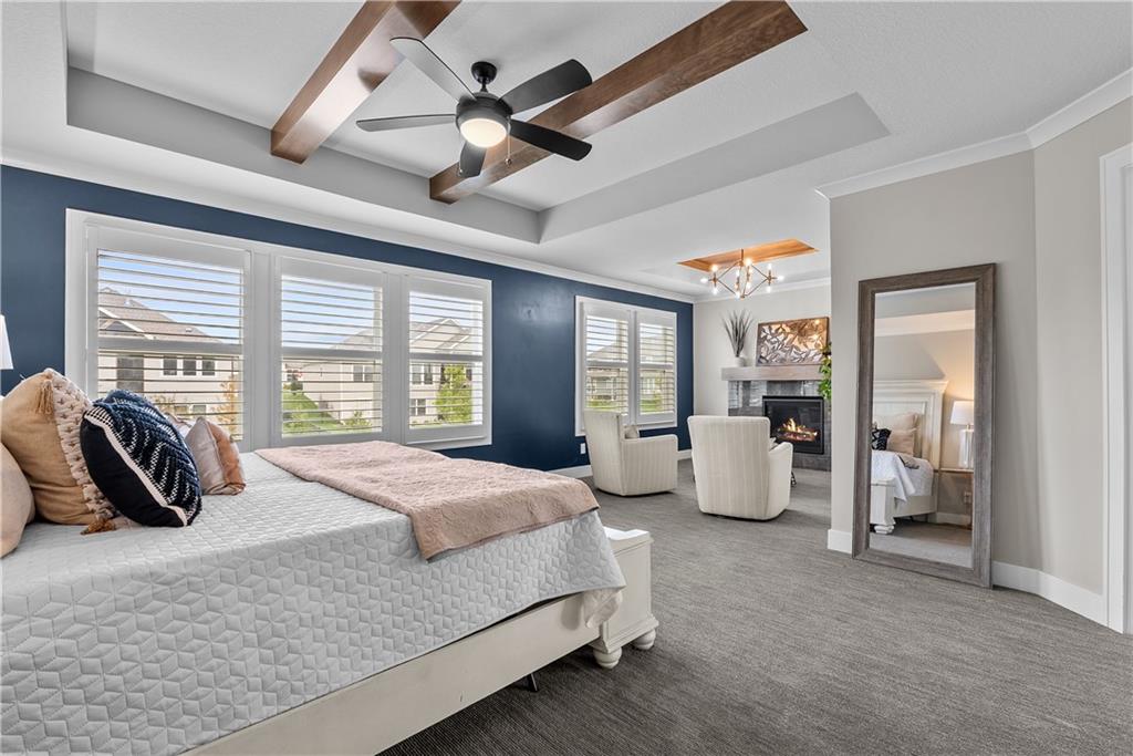 The Search is Over- We Have A Rare Find in Woodside Ridge! This beautiful six-bedroom, two-story home is truly a standout in the highly desired neighborhood of Woodside Ridge. Just over three years old, it’s been lovingly enhanced with extensive landscaping and a gorgeous backyard patio retreat. The covered patio feels like an extension of the home—perfect for relaxing evenings or weekend gatherings. Inside, the heart of the home is the gourmet kitchen, featuring a massive island that’s the ultimate gathering spot. You’ll love the painted cabinetry, gas cooktop, and walk-in pantry that’s as functional as it is impressive. Every detail shines—especially the on-trend light fixtures that elevate the space. Lots of windows throughout the home bring in so much natural light, creating a warm and inviting feel in every room. Upstairs, the spacious primary suite is a true retreat, complete with a cozy fireplace and sitting area. The spa-inspired primary bath boasts elegant finishes, dual vanities, and his-and-her walk-in closets that offer all the storage you could want. The finished lower level provides incredible versatility with a large living area—ideal for movie nights, game days, or a home gym—along with the sixth bedroom and a full bath, making it perfect for guests or extended family. Woodside Ridge residents enjoy an exceptional community with resort-style amenities including a pool, clubhouse, pickleball courts, hammock garden, playground, and scenic walking trails. HOA dues even cover trash and recycling. Bonus, you’re just minutes from highway access, great shopping, restaurants, and the beloved Rock Island Trail. This home truly has it all—space, style, and an unbeatable location!