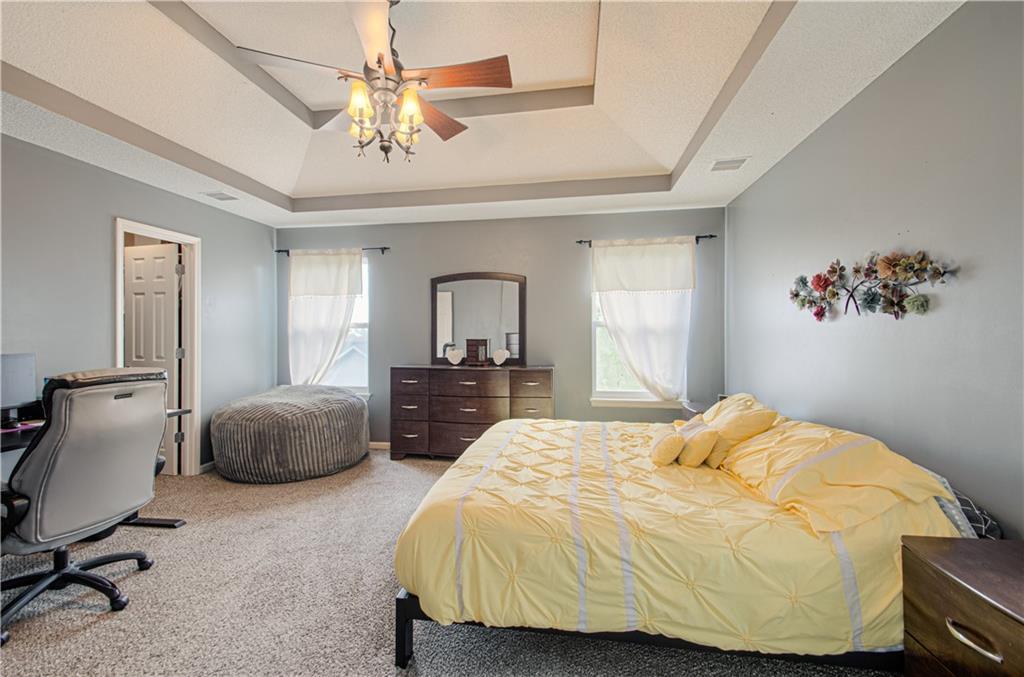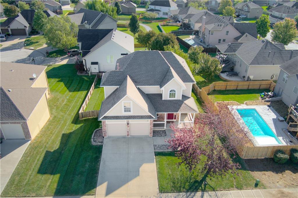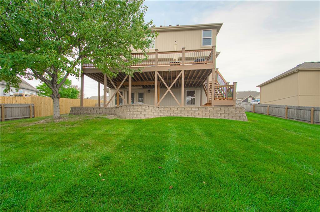 STANDOUT 2-Story in Summerfield East!! Quality and Condition Shine in this pristine 4-bed, 3.5 bath turn-key home with true move-in-ready appeal. Big-Ticket Improvements—including NEW HVAC & Water Heater, upgraded stainless appliances, and a long list of MORE—invite your confident transition. With updates throughout, the open main level provides flexible living and entertaining space, while the finished walk-out basement with full-bath adds room for a home office, guest suite, or recreation area. Enjoy outdoor living and spectacular views on the nearly new 28’x16’ deck, or from the brick patio with built-in firepit, and a fully fenced backyard—ideal for both relaxing and hosting in style. Upstairs, the spacious primary suite features a large walk-in closet with built-ins and a spa-like bath with whirlpool tub, separate shower, and double vanity. Generous secondary bedrooms are highlighted by the convenience of second-level laundry with washer & dryer that stay. Bonus enhancements include an EV-ready garage with insulated doors for energy conscious comfort. Located less than a block from the neighborhood pool, near Lake Remembrance, within the award winning Grain Valley School District, this east Blue Springs home is Made For The Way You Live Today.