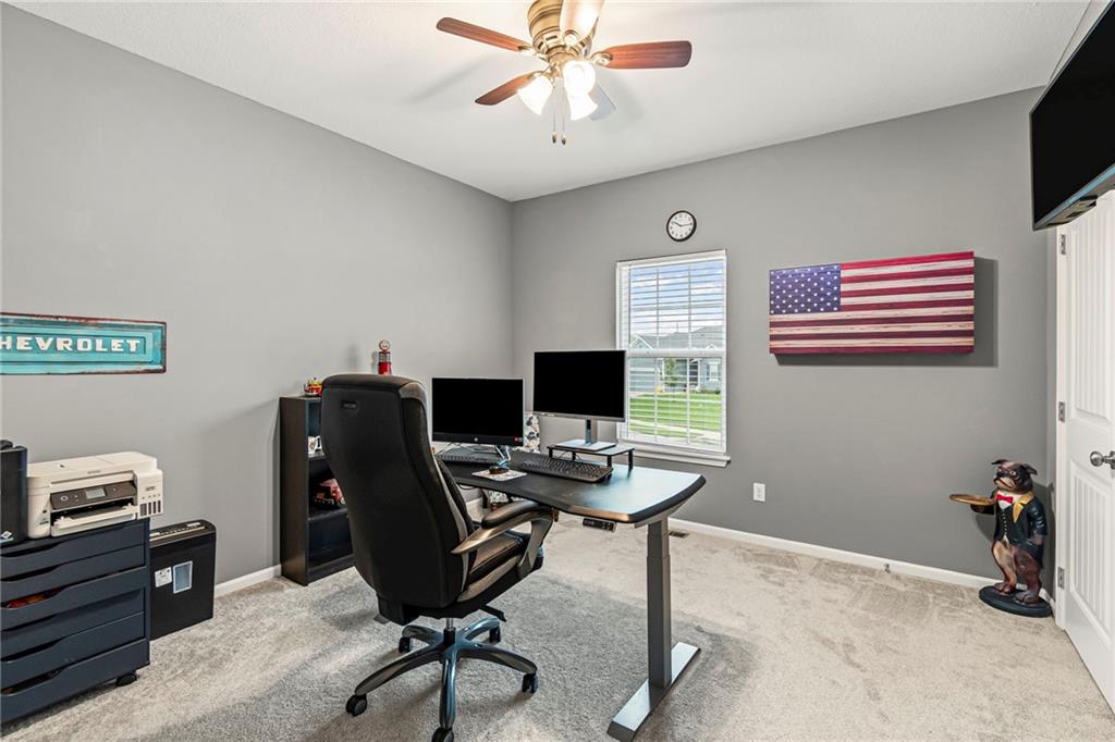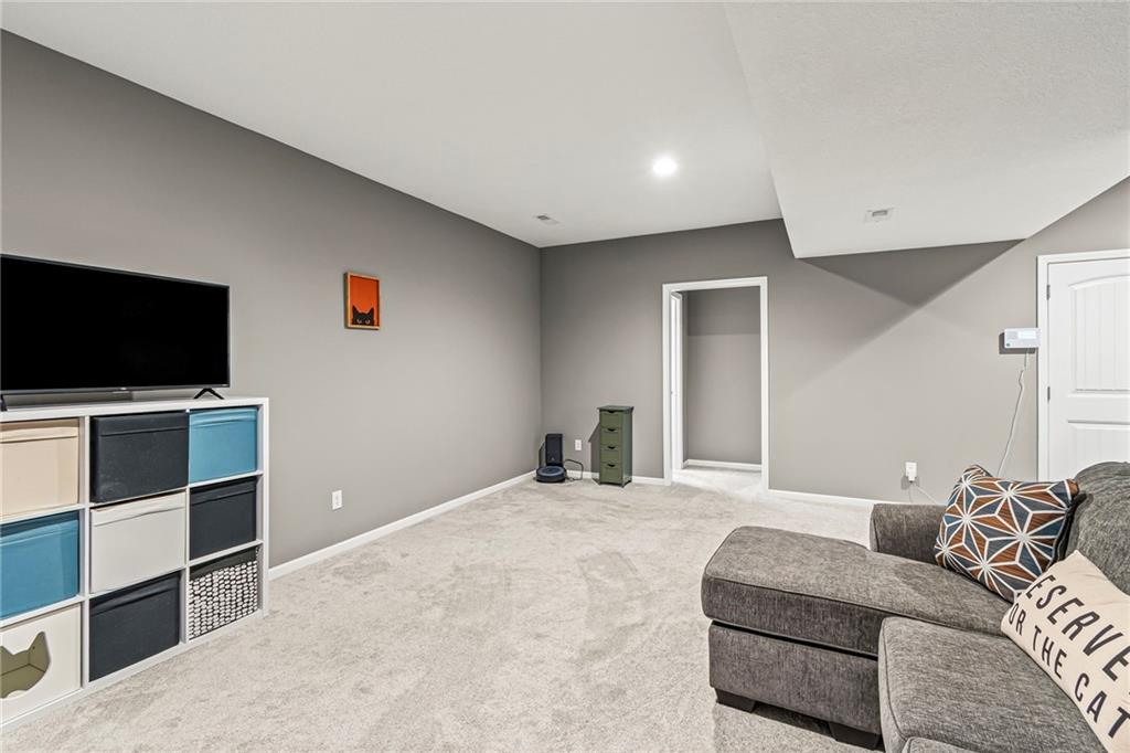 Step inside this nearly new Liberty home where thoughtful design and everyday comfort come together. The main level greets you with a spacious, light-filled living room anchored by a cozy gas fireplace and plush carpet that invites you to kick off your shoes and stay awhile. Just beyond, warm hardwood floors carry through the kitchen and dining area—an open, seamless space perfect for gatherings. The kitchen shines with quartz countertops, stainless steel appliances, ample cabinetry, and a pantry, while the conveniently located laundry room just off the kitchen keeps everything practical and within reach. The primary suite is privately tucked away, offering a peaceful retreat with a large walk-in closet and a spa-inspired bath complete with dual sinks, soaking tub, and separate shower. Two additional bedrooms and a full bath round out the main level. Downstairs, the finished lower level expands your living space with a generous family room ideal for movie nights, game days, or a cozy hangout spot. You’ll also find a fourth bedroom and third full bath—perfect for guests or a home office. Out back, unwind on the covered deck or entertain on the extended patio overlooking the beautifully maintained yard. With an oversized three-car garage and access to Clay Meadows’ neighborhood pool, this home blends small-town Liberty charm with modern style and convenience.