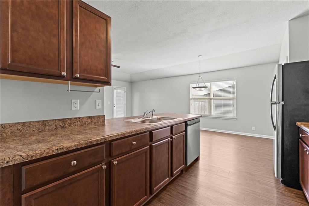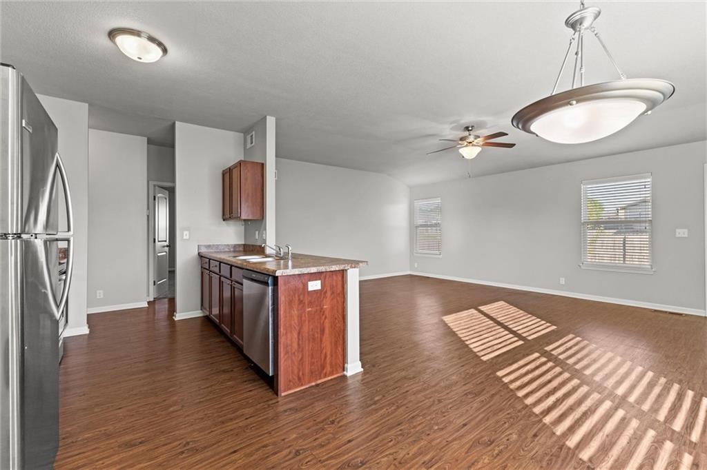 This home offers 3 bedrooms and 2 bathrooms with a functional floor plan. The kitchen opens to the living area, and luxury vinyl plank flooring is installed in the common areas for easy maintenance. The property has a full unfinished basement that provides additional storage or flex space. The backyard is fenced with a wooden privacy fence. Located near shopping, schools, and local employers including JB Hunt and Amazon.
