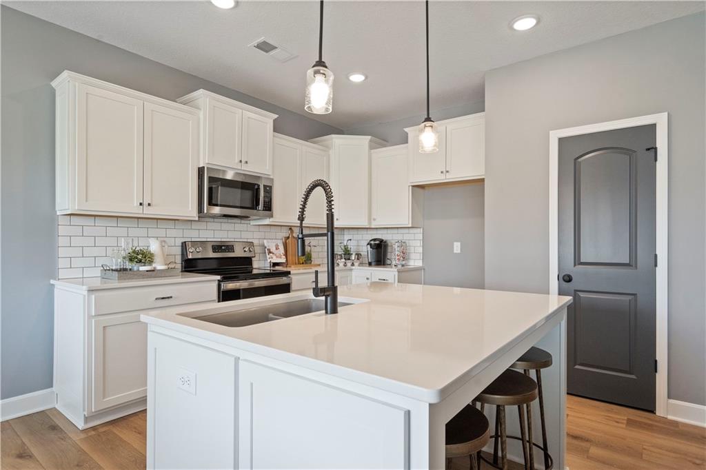 Ashlar Homes presents the Graysen floor plan, a fresh single level ranch in Woodlands at Chapman Farms. This thoughtfully designed 3 bedroom, 2 bathroom home sits on a desirable cul de sac lot with a two car garage and a low maintenance slab foundation for true one level living. From the moment you step inside, the plan feels open, bright, and intuitive. The kitchen is the heart of the home, anchored by a nice sized island for meal prep and casual seating, plus a walk in pantry to keep counters clear. Seamless flow to dining and living areas makes everyday life easy and entertaining effortless. The private primary suite offers a calm retreat, while two additional bedrooms flex for guests or a home office. Thoughtful storage, energy efficient systems, and durable finishes deliver the confidence buyers love in new construction. Wide hallways and minimal transitions emphasize the convenience of no stairs and no basement. Everything you need is right where you want it. There is still time to make selections! Pictures are of a previously finished model home.