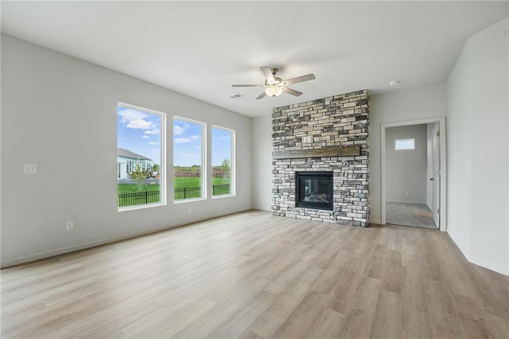 Ashlar Homes presents the Harrington floor plan in Woodlands at Chapman Farms. This thoughtfully designed 4 bedroom, 2.5 bathroom home sits on a desirable cul de sac lot and includes a two car garage for everyday convenience. From the inviting entry to the open concept main living areas, the layout balances easy gathering spaces with quiet retreats, making daily life and entertaining feel natural and effortless. The kitchen is the heart of the home with a nice sized island for prep and seating plus a walk in pantry to keep counters clear. Flow from kitchen to dining to living spaces creates a seamless hub for weeknights and weekends alike. Upstairs you will find well sized secondary bedrooms that flex for guests, office, or hobbies. The private primary suite offers a calm retreat with a comfortable bath and practical closet space. A convenient half bath serves the main level while two full baths support busy mornings. Quality construction, energy minded features, and durable finishes deliver the low maintenance confidence buyers love in new construction by Ashlar Homes. Storage is thoughtfully placed so everything has a home, and the two car garage adds room for gear and everyday organization. Location perks: Set within Woodlands at Chapman Farms in Blue Springs, you are minutes from Adams Dairy Landing for shopping, dining, and services. Outdoor escapes are close at Fleming Park, Blue Springs Lake, and Lake Jacomo with trails, paddling, fishing, and picnic friendly spaces. Quick access to primary routes keeps commutes simple, and nearby neighborhood paths and play areas add everyday ease. Pictures are of a previously finished home. There is still time to make your own selections!