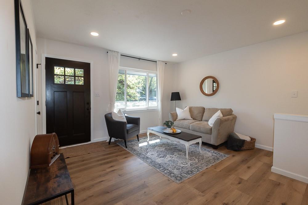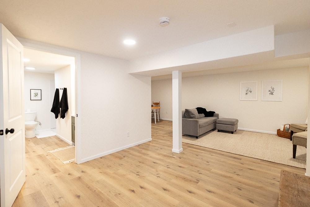 Gorgeously remodeled and spacious home. The newly designed kitchen offers new custom cabinets, new tile backsplash, and all-new appliances. Bathrooms carry the same high-end cabinetry for each vanity. Dual living room space, one on the main floor and a second in the basement; with the basement offering good space for hosting, storing, or hobbies. Additionally, the home offers all new flooring throughout, all new paint for the interior and exterior, as well as all new doors, hardware and fixtures. The bedrooms include a primary bedroom and a second bedroom on the main floor with a larger bedroom in the basement. The exterior offers new windows, new roof, new front deck, and new boards and reinforcements on the backyard deck. The spacious front and backyard areas allow multiple options for hosting and activities.