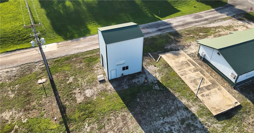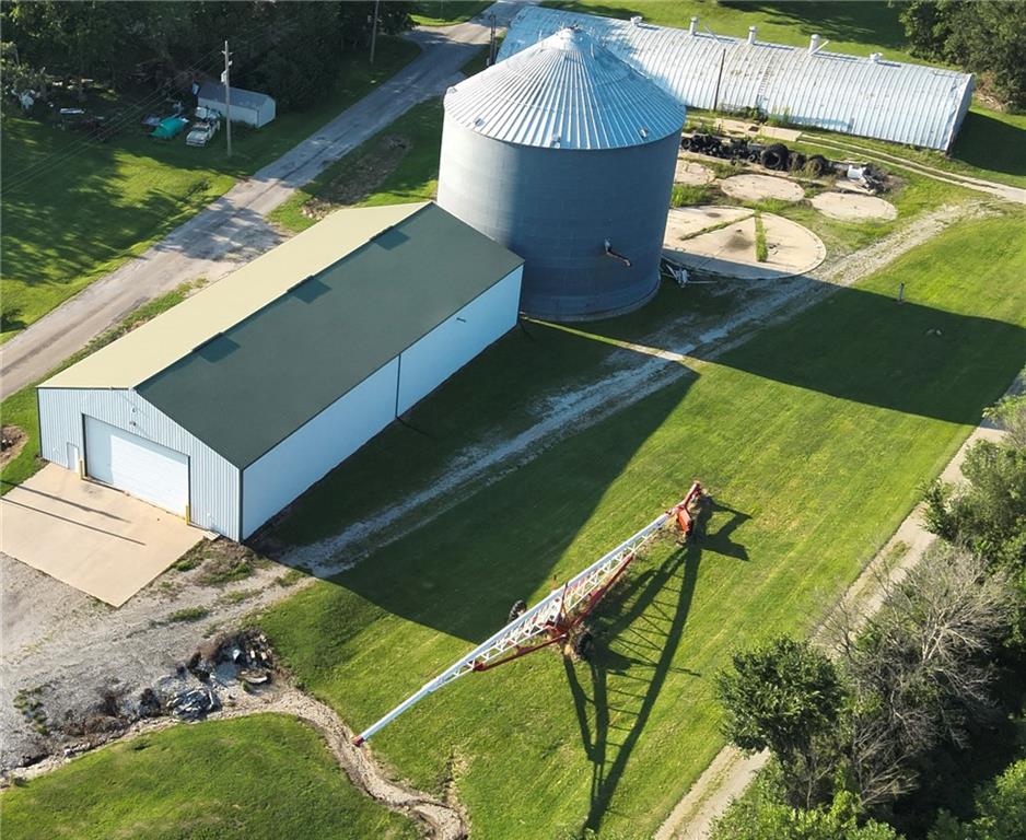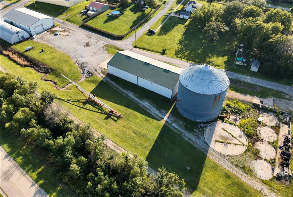 Great Opportunity! Possibilities are endless! Farmers needing Machine storage / Grain Storage 1200 Sq Ft Heated and Cooled office building plus 900 sq. ft. Meeting room. 7200sqft Ag Chemical/ Liquid Fertilizer Warehouse (Easily converted to Machine storage.) water, electrical, overhead doors with Attached:5400 Sqft. Quonset with dock, 120,000 bu. Grain Storage 60ft dia., Shop / Equipment storage: overhead doors, workbench, electrical, air compressor, heat