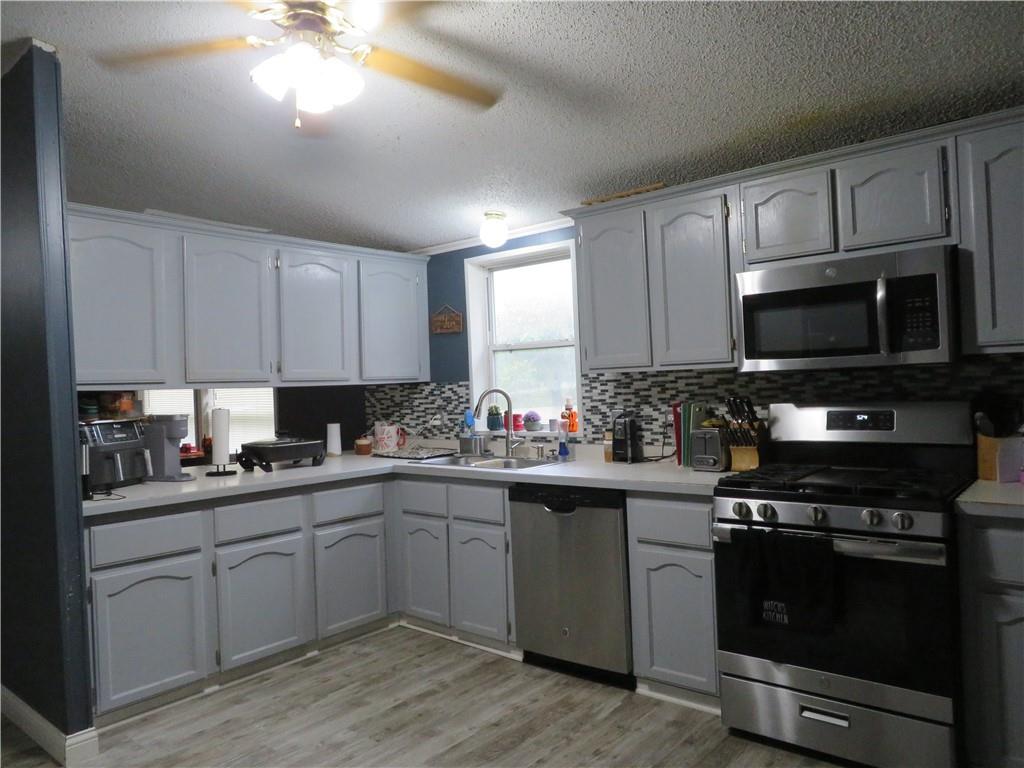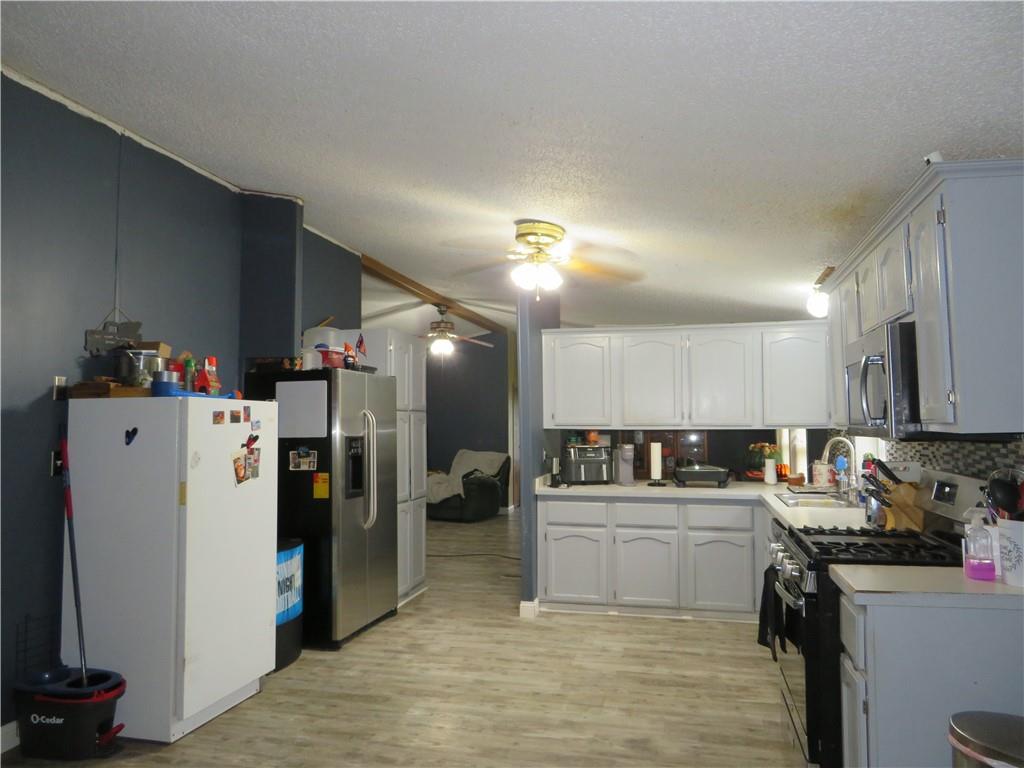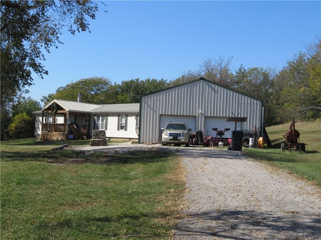 Check out the awesome view from this hilltop property! This spacious 4-bedroom, 2-bathroom home offers the perfect blend of comfort, functionality, and room to roam. Enjoy a bright and open living room/dining room combo—ideal for family gatherings and entertaining. The oversized kitchen is a chef’s dream, featuring abundant cabinet space, a walk in pantry and gas stove. Luxury vinyl plank flooring runs throughout the main living areas, offering style and durability. The private master suite includes a full bath for your comfort and convenience. Step outside to enjoy both covered front and back decks—perfect for relaxing or watching the wildlife. The property includes a 30x30 two-car garage with a loft area, plus an additional 30x30 outbuilding for storage, a workshop, or hobbies. Nestled on 6 partially fenced acres with mature trees offering shade and privacy, this property is a rare find, with easy access to main highways. Whether you're looking for space to spread out, raise animals, or simply enjoy country living, this home has it all!