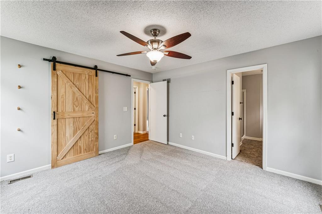 Move-in ready 3-bedroom home with no HOA on a treed, fenced lot in a quiet Olathe neighborhood! Major updates include new HVAC (2024), water heater (<1 yr), new carpet throughout (including stairs, closets, bedrooms, and living room), plus new flooring in the upstairs hallway, gym, and laundry areas. Fresh interior paint, new light fixtures in kitchen and office, and braced deck. The kitchen features Corian counters and freshly painted cabinetry, with a new refrigerator (2025), while the dining area opens to the deck for easy entertaining. The living room offers a wood-burning fireplace and hardwood entry. Upstairs, the primary suite features a ceiling fan, private bath with dual vanities and walk-in shower, and a new barn door on the closet. Bedrooms 2 & 3 include new carpet, built-ins, and ceiling fans. Lower level includes an office with LVP, half bath, and laundry. Unfinished sub-basement with shelving provides ample storage. New soundless garage door system, newer dishwasher, and improved landscaping out front. Exterior was repainted and wood rot replaced within the last 5 years. Fence replaced on three sides (2023). Other things to love: all of the nearby parks & trails, including the close proximity to Prairie Center Park, strong public schools, commuter friendly with fast I-35 access.