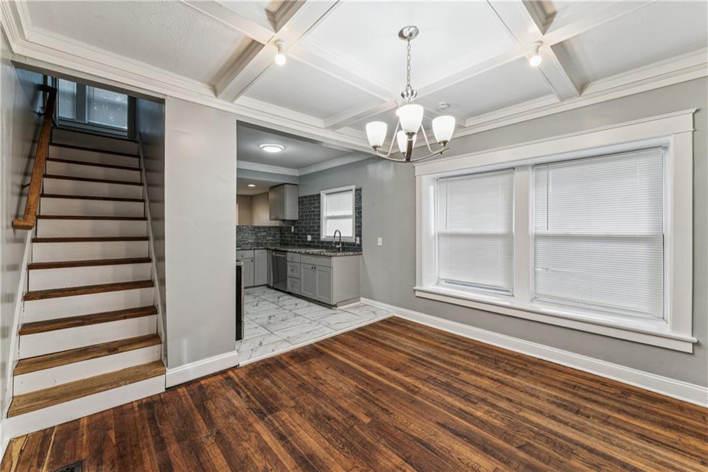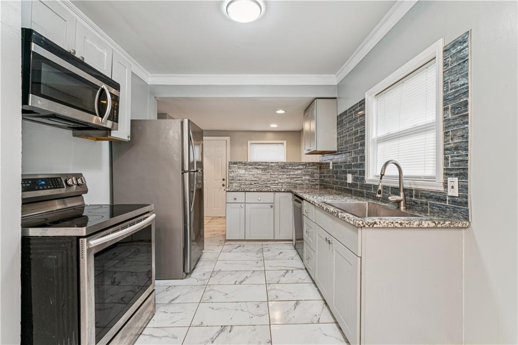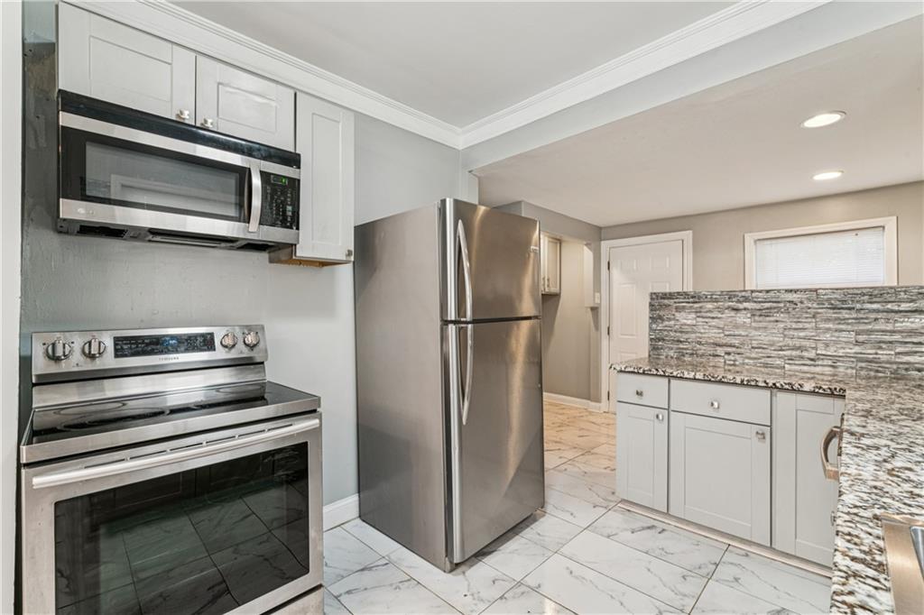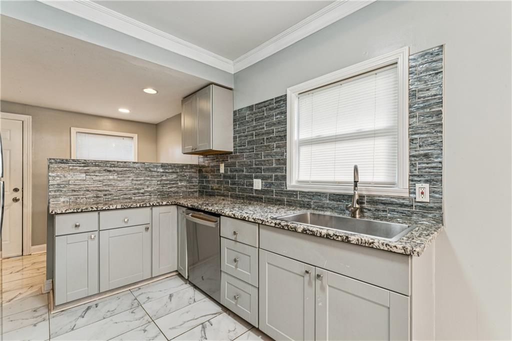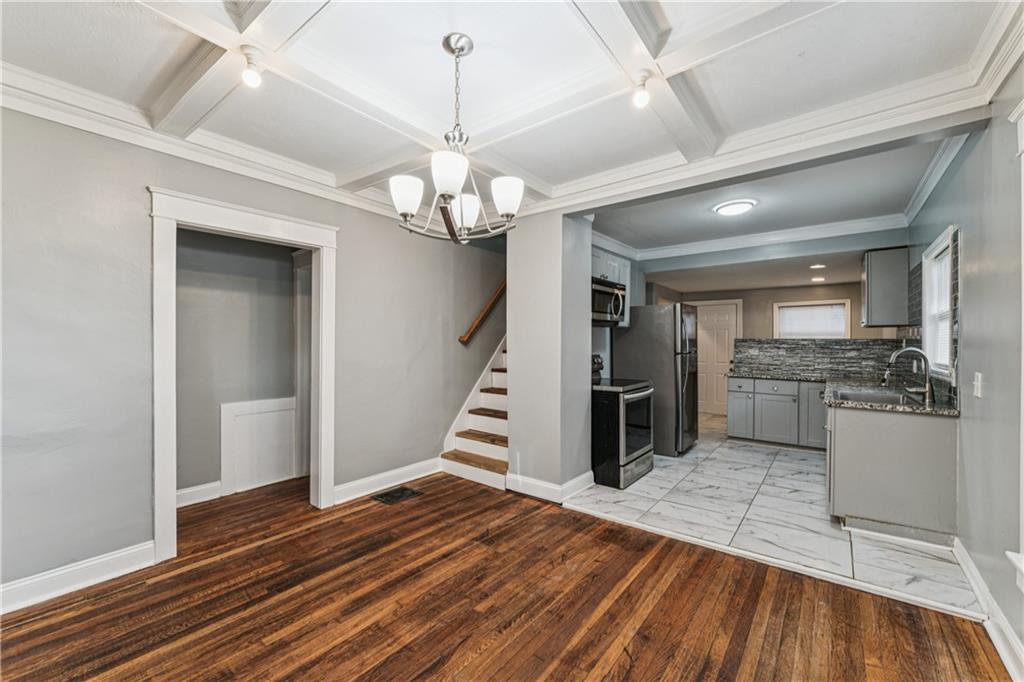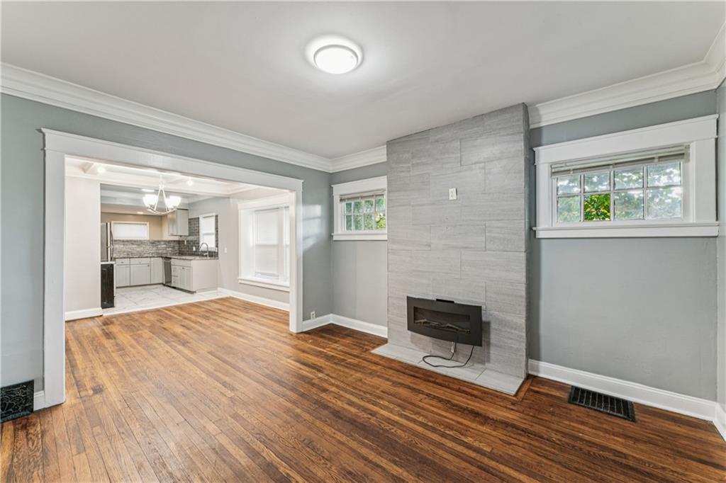 Investor Steal This beautifully remodeled 3-bedroom, 1-bath home offers the perfect blend of modern finishes and gorgeous charm. From the moment you arrive, the welcoming front porch sets the tone with its inviting character and curb appeal. Step inside to discover a completely remodeled kitchen featuring granite countertops, newer cabinets, gorgeous backsplash, and a convenient breakfast bar—ideal for casual meals or entertaining. The open-concept layout flows into a warm and inviting living area, complete with a modern electric-start fireplace that adds style and comfort. Upstairs, you'll find a private retreat-style bedroom, perfect as a primary bedroom, guest room, or dedicated home office. Just off the kitchen are washer/dryer hookups for added convenience, and the unfinished full basement provides plenty of storage space. Enjoy your evenings on the spacious back deck, perfect for outdoor dining and gatherings with friends and family. Additional highlights include: Fresh flooring, Updated lighting and fixtures. Whether you're a first-time homebuyer, downsizing, or looking for a smart investment property, this move-in ready gem checks all the boxes. Don’t miss your chance—schedule a showing today!