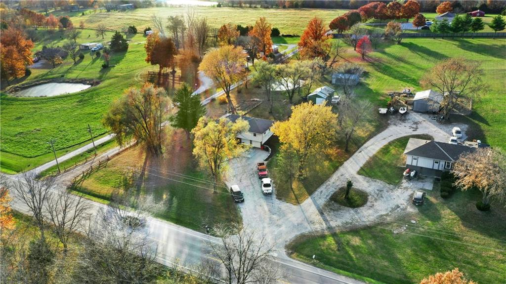 Looking for space inside and out? Welcome home…3 bedroom/2 bath home has been recently updated and is move in ready! As you step inside this light and bright home, you will enter the living room featuring luxury vinyl plank floors and an amazing wood burning fireplace. Beyond the living room is the home’s dining space open to the kitchen. Lots of cabinets in the kitchen including a pantry. Kitchen features a huge center island with wine fridge. All appliances stay! Sliding glass door off the dining area leads to the backyard on the 2.37 +/- acre property. Property has 4 outbuildings, a fenced in space for animals, a pond, and a vegetable garden area. The rest of the main floor boasts 2 bedrooms with hallway bath and and owner’s suite including walk-in closet with private bathroom. All lighting and fixtures have been updated throughout. Flooring has recently been replaced and is all solid surface both upstairs and downstairs. Basement has a large family room space with solid surface flooring. Basement also has a non-conforming room that could be a great office or workout room. Laundry room is on this level as well as the home’s 2-car garage. Wash and dryer stay! Basement walks-out to the front of the property to the large driveway space that can hold many vehicles. Lots of trees, lots of space, lots of privacy, lots of possibilities. Just outside of Oak Grove, Missouri…come make this home yours today!