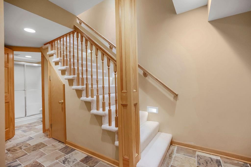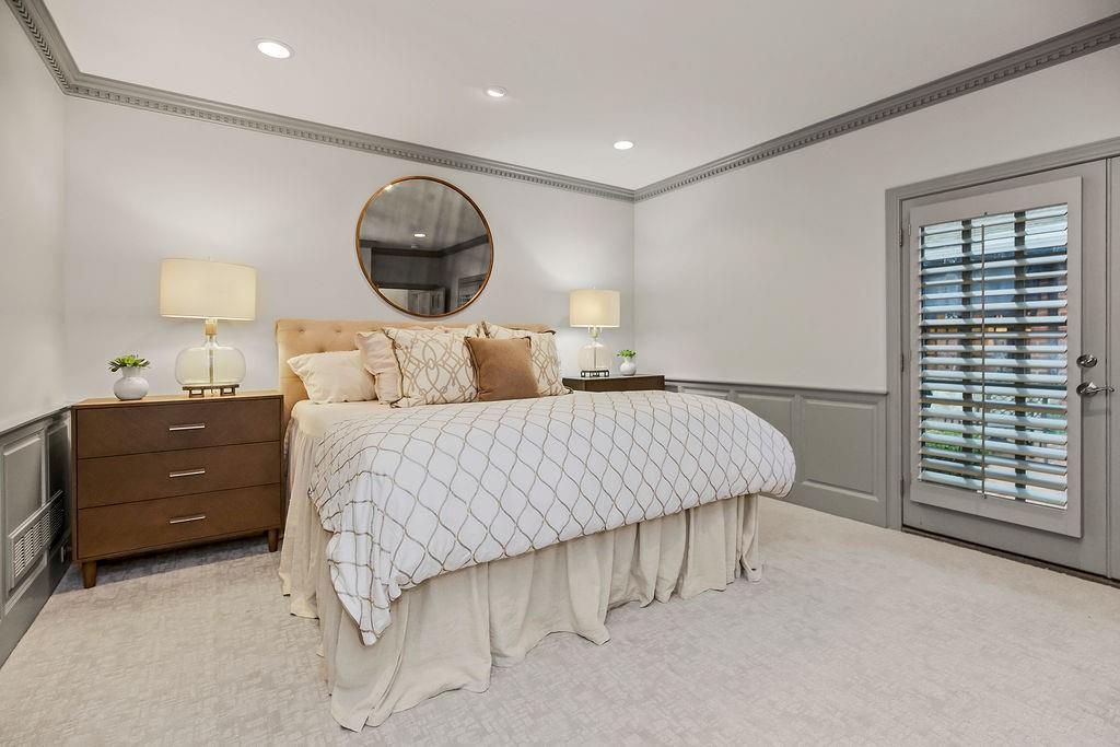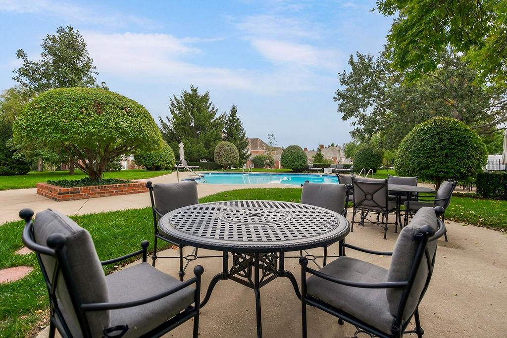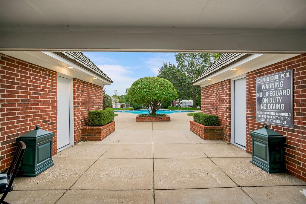 This home has it all! The homes entrance is through a beautiful brick courtyard, featuring a covered outdoor dining area. The Main floor features are a recently renovated Master Suite on the main floor with a stunning master bath, large closet with ice maker and washer dryer and new carpeting. Two full bedrooms upstairs, both with full baths, new carpeting, and a fully finished lower level. The lower level has a private office, built in bunk beds, egress windows and a full bath, with storage. Compton Court residents are able to enjoy the pool amenities. Great neighbors! Buyers agent to verify taxes and HOA dues.