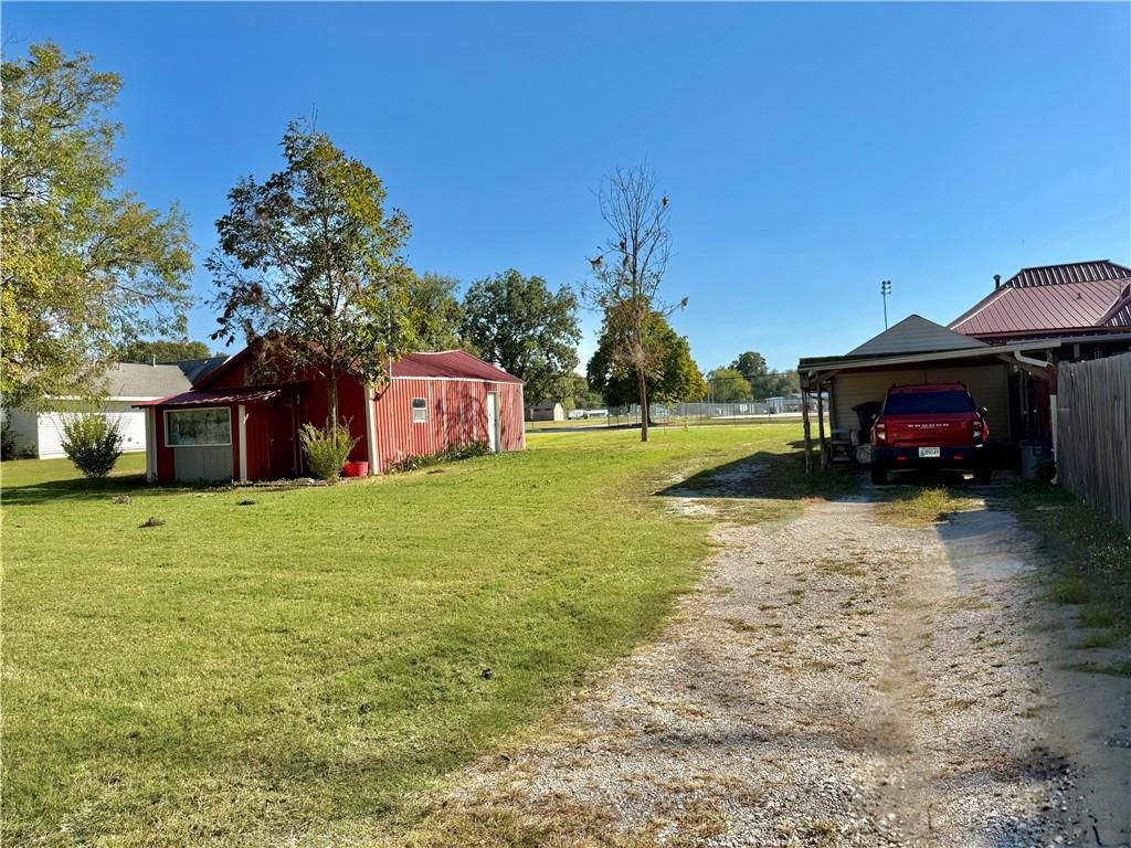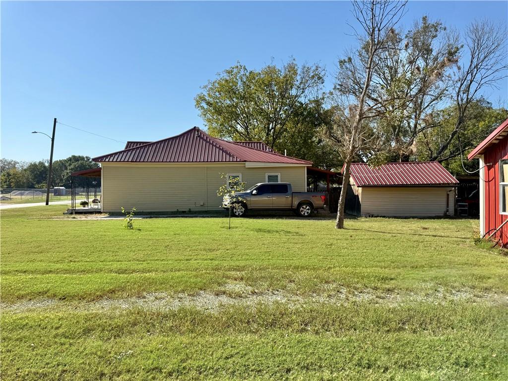 This 3-bedroom, 1-bath home sits on a corner lot made up of three city lots, offering plenty of space and a convenient in-town location. The home includes 1,260 sq ft of living space with a comfortable layout and a new HVAC unit for efficient heating and cooling. The durable metal roof adds long-term value and low maintenance. Out back, you’ll find a covered deck and a privacy-fenced yard—ideal for pets, kids, or relaxing outdoors. The property also includes a small 1-car detached garage, carport, and storage shed. Located across from the city park and football field, this home combines practicality, space, and a great setting for everyday living.