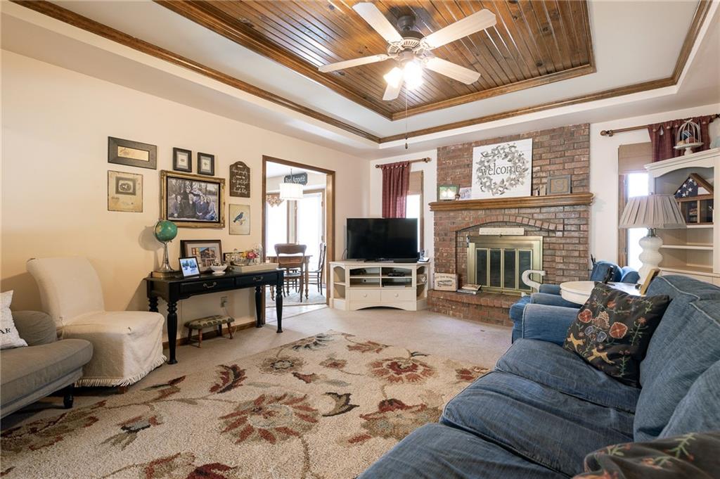 Welcome home to this charming 3-bedroom, 2-bath retreat offering 1,463 square feet of comfortable living space in a peaceful neighborhood. Step onto the inviting front porch, the perfect spot for morning coffee, and take in the quiet surroundings. Inside, you’ll find an open, light-filled layout with beautiful updates throughout. The living room features a cozy fireplace, ideal for relaxing on cool nights, while the kitchen offers granite countertops, stainless steel appliances, and plenty of space for cooking and gathering. The primary suite includes a private bath with a whirlpool tub and skylight, creating a calm space to unwind. Two additional bedrooms provide flexibility for family, guests, or a home office. Out back, a large, fenced yard offers endless possibilities — from backyard games to grilling on the spacious deck. Down the street, enjoy access to a beautiful wooded walking trail, with the lake peeking through the trees and a nearby park perfect for pets or play. This home combines everyday comfort with a touch of tranquility — ready for you to move in and make it your own.