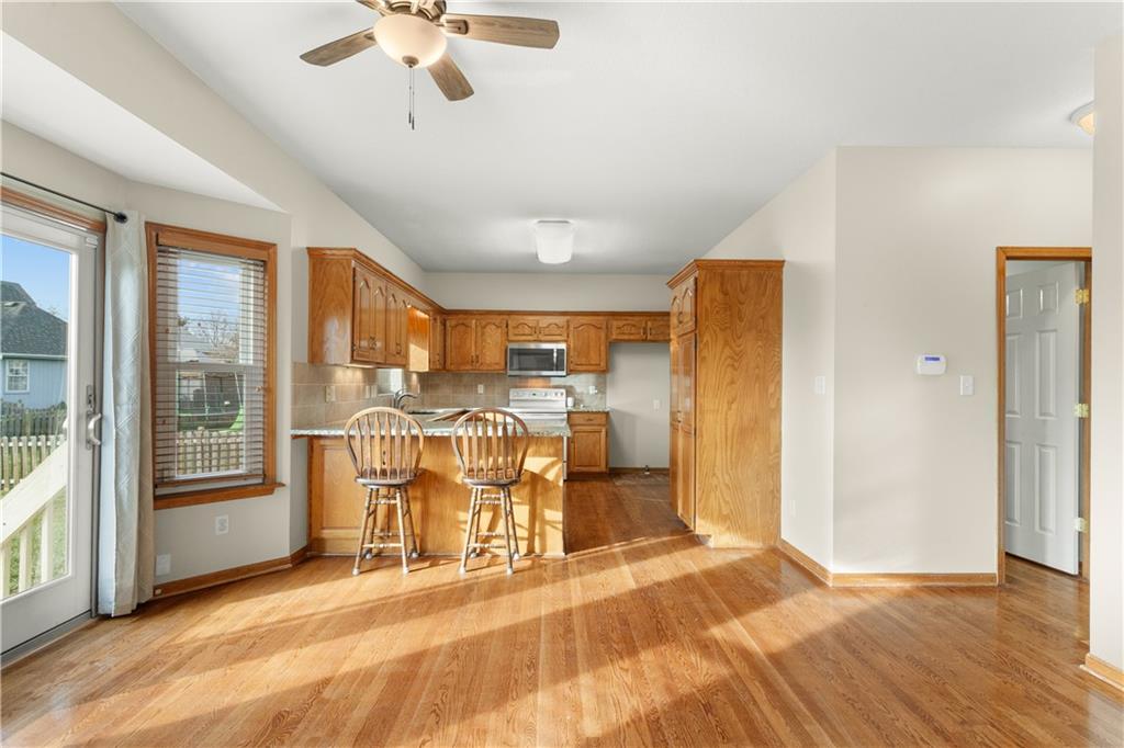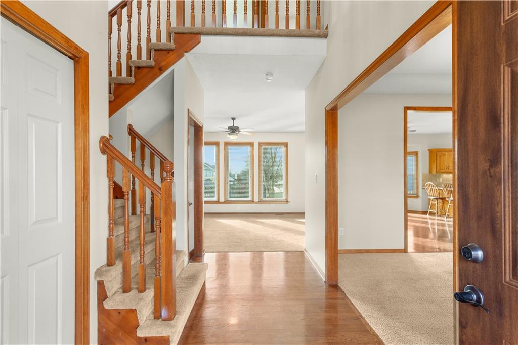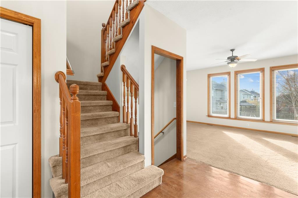 Check out the fresh look! Just put back on the market the evening of 12/21 after being off the market the past 11 days, freshening and repainting most of the interior. Very nice, neat and clean 4 bedroom two story home. You'll love the space this home has inside and out! Beautifull hardwood floors combined with soft carpeting on the main levels feels very comforting and inviting. Lots of windows makes it light and bright as you walk through the home. Hang out downstairs in the finished basement as a great play room for the kiddo's or make it into your game time entertaining space. The bedrooms are nice size and wait til you see the upscale newly remodeled master bathroom, it's awesome! Sellers had very nice new windows and slider door installed in 2022 and new exterior doors installed in 2024. This home has a great fenced yard for outdoor fun, that also has an irrigation system, and you will love the super convenient location of the Hawks Ridge neighborhood!