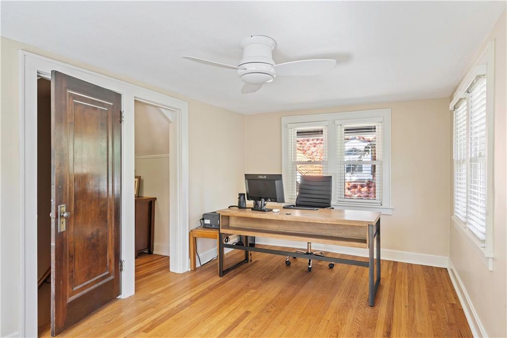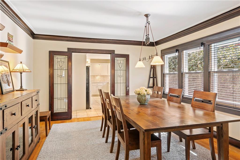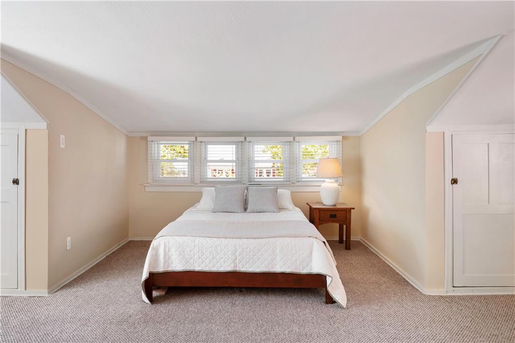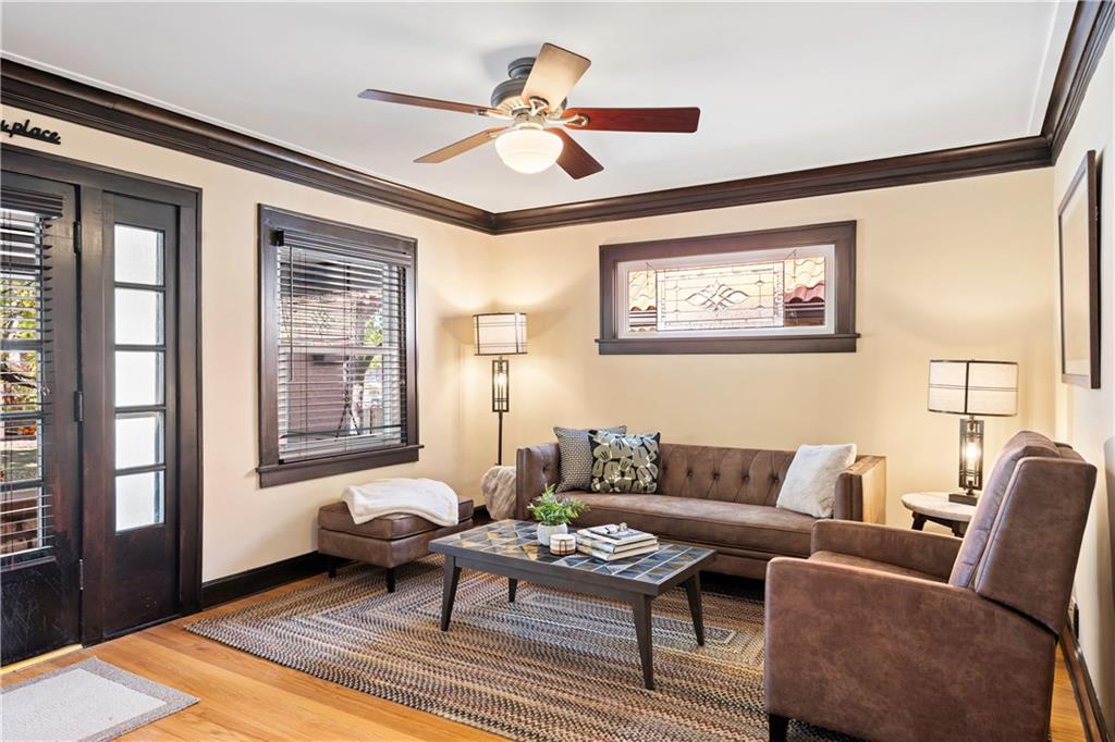 This house has just about everything you would want in a Brookside home...and MORE! A cozy front porch welcomes you inside to the bungalow floorplan: two bedrooms and full bath on the first floor; third bedroom, full bath and bonus space on second level. You will appreciate the original 1924 charm here: (gas) fireplace with bookshelves on either side; hardwood floors, crown molding, and stunning leaded glass doors in the spacious dining room lead you into the large, eat in kitchen. First floor bath recently completely remodeled! Upstairs, a sunny bonus room and updated bath connected to the third bedroom-check out the original Craftsman doors on the closets! Roof & HWH less than ten years old. Newer windows. Outside, the wide private driveway leads to a an oversized 22'x39' garage with it's own electrical box, water, gas furnace and a/c. Think of the possibilities here: man cave or she shed, kids' playroom, rec room, extra storage. This house sits in an ideal Brookside location--grocery store, bank, restaurants, cafes and shops just across the street!! The popular Trolley Track Trail is nearby as well. If you want to live in Brookside, this may be the ideal home for you!!