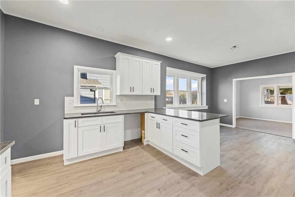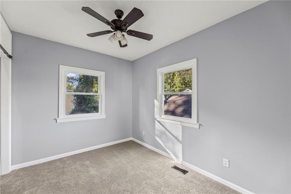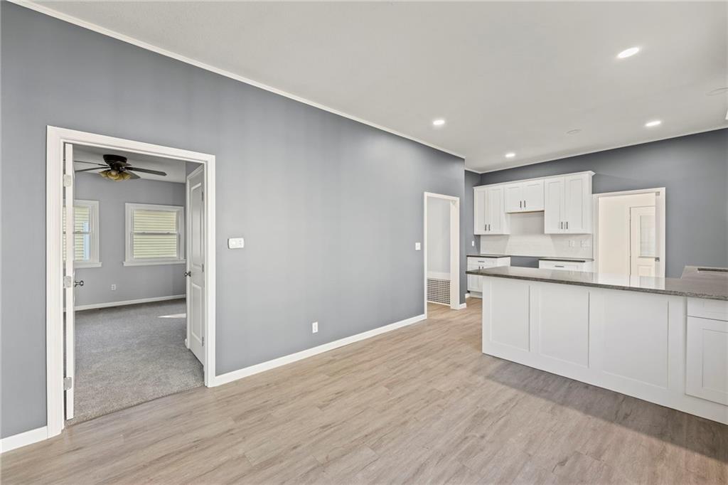 Experience the charm and modern convenience of this beautifully remodeled three-bedroom home, starting with the inviting large front porch finished with durable composite decking. Inside, the vaulted ceiling elevates the family room, which flows openly into the dining room highlighted by triple windows and a decorative shelf. The fabulous kitchen is a chef's delight, showcasing new custom-painted cabinets, granite countertops, and a fresh new backsplash. A convenient pocket door leads to the large laundry/mud room, complete with a stylish Farmhouse Hall Tree. Luxury vinyl plank flooring unifies the main living areas, complementing the extensive recent upgrades, including a new Class 3 High Impact roof, new windows, a remodeled bathroom, updated interior and exterior paint, a new hot water heater, fresh knockdown ceiling texture, and new lighting throughout. The main level offers two comfortable bedrooms plus a dedicated office, while the third bedroom with its own mini-split unit is situated upstairs, offering flexible use as a rec room. Outside, you'll find a carport and a utility shed in the nice yard. Expect to be impressed by this completely refreshed home!