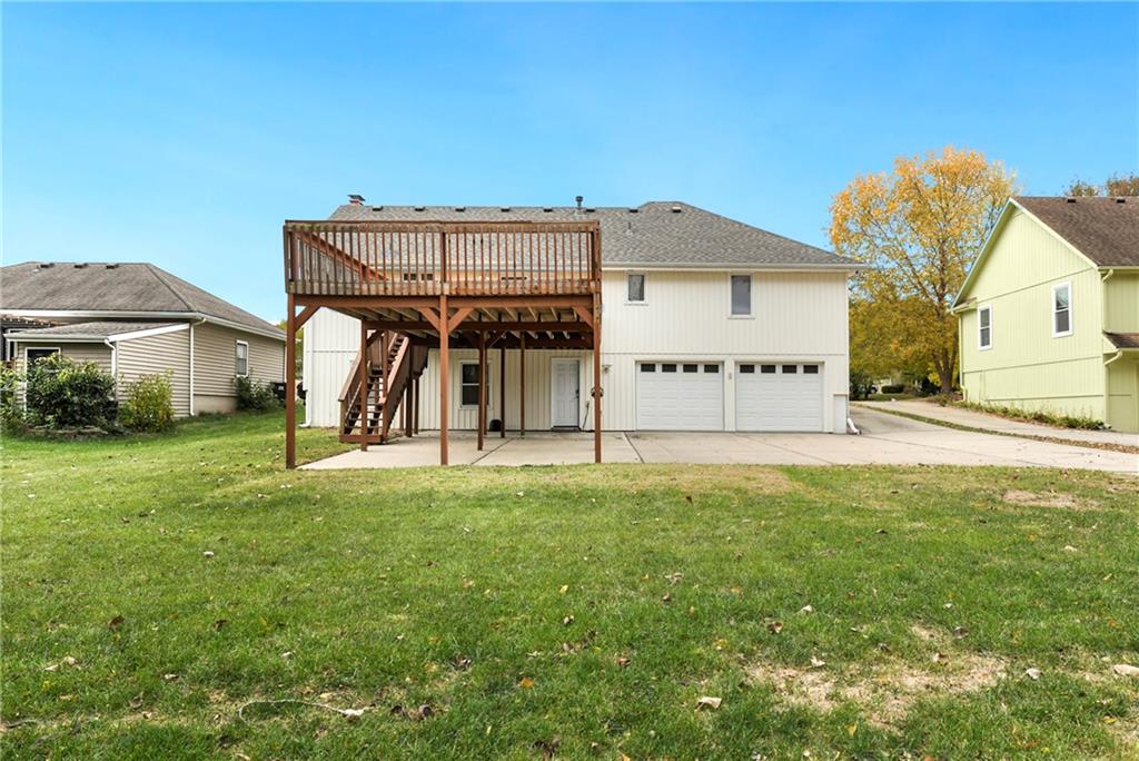 ***Back on the market - NO fault of seller! Investors cancelled right before closing *** Significant price improvement -schedule today before it's gone! Welcome home!! Here's the perfect property in a great location in Lee's Summit you've been looking for! Raised ranch with some unique features and updates you'll love! There's plenty of space for your visitors to park with an expanded deck with 3 carports underneath and 2 car garage in back. For easy access and few steps, the front circular drive is a great addition. Upstairs, you'll find a spacious kitchen, laundry, living and dining areas with 3 bedrooms and 2 baths. Enjoy the living room fireplace for cozy, colder evenings and coffee or meals on the deck during the warm months! Downstairs, an additional bathroom, non-conforming bedroom (with fireplace), and living room provide a separate living space, complete with a walkout to the backyard with private greenspace and direct access to the spacious garage (with HVAC). Newly repainted, new flooring, added deck support and a one year old roof with transferable warranty make this raised ranch move-in ready just in time for you to move in by the holidays and make this house your home!