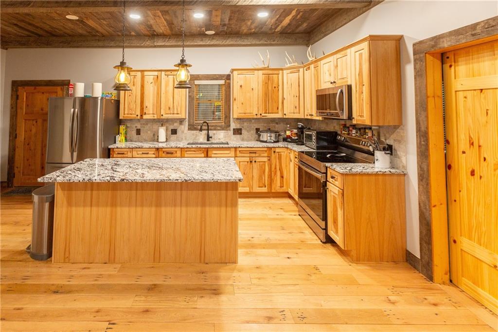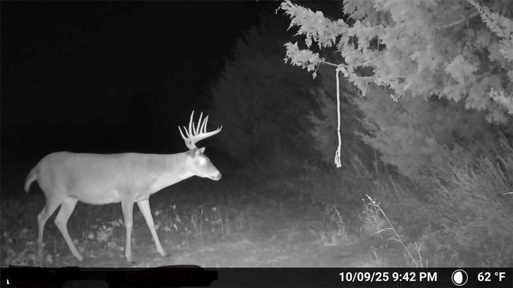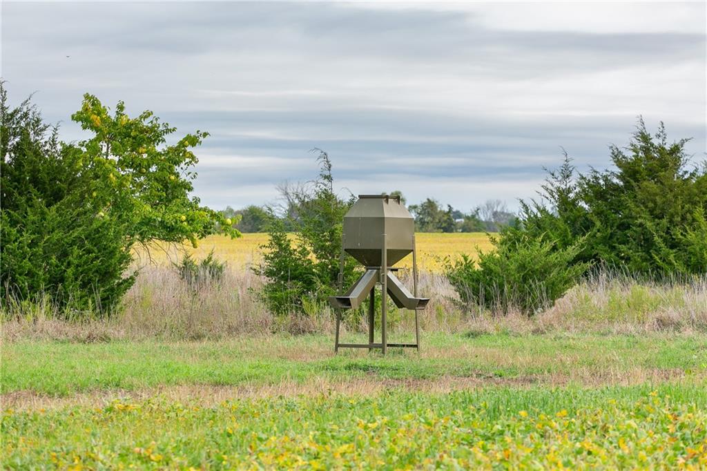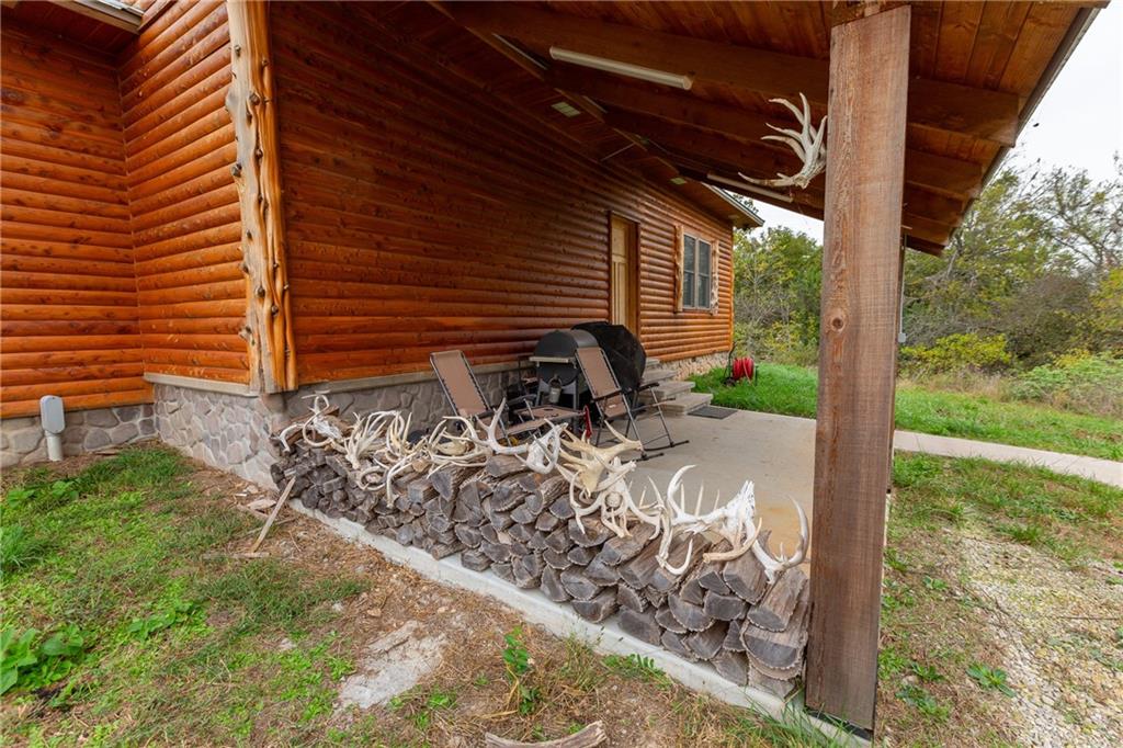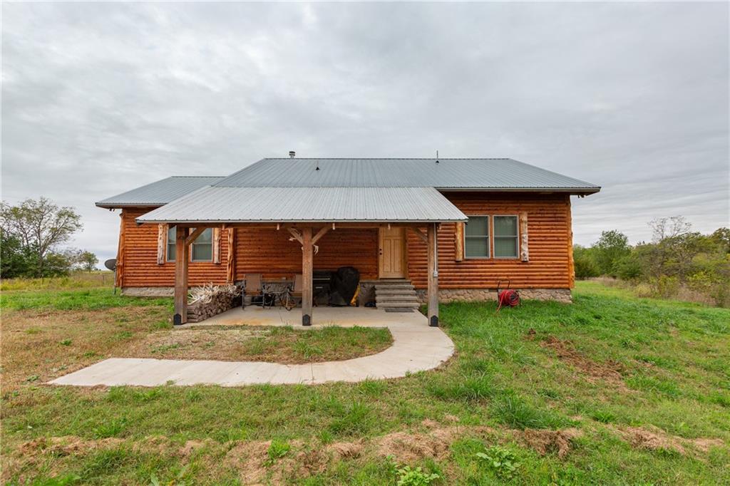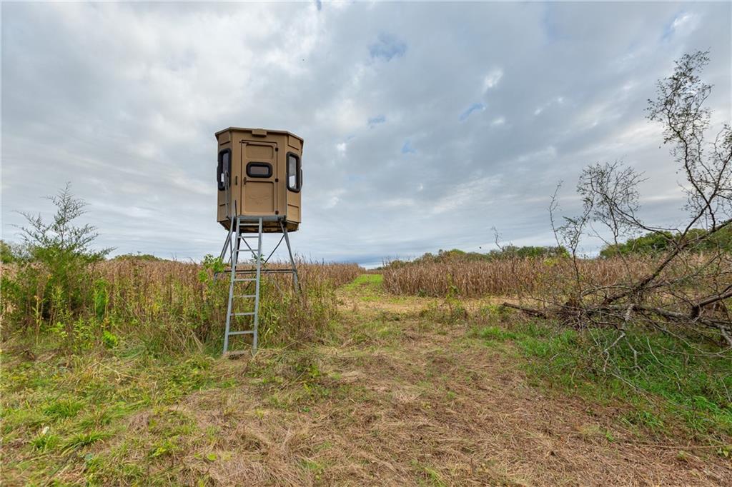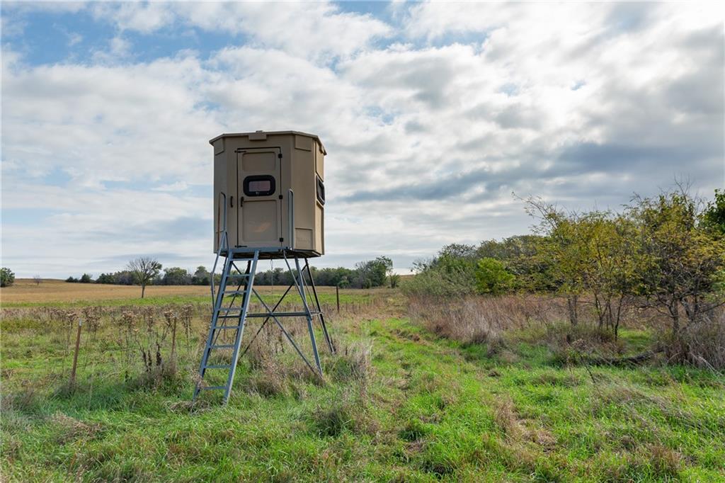 275± acres in Anderson County with exceptional recreational potential and a 2,200 sq. ft. log cabin. Property sits at the end of Wyoming Road in the southwest corner with dead-end access from both north and south. The 4-bed, 2-bath cabin features a wood-burning stove, cedar mudroom, antler fixtures, and large metal ceiling fan. It runs on a 2,000-gallon cistern, with a 5th-wheel trailer and 1,000-gallon tank included for refilling. Land includes 120± tillable acres, traded to the adjoining neighbor for hunting rights on 500± bordering acres. Over 1/3 mile of North Fork Little Osage River frontage, 4 ponds, and wooded draws provide abundant water and wildlife habitat. Nearly 4 acres of food plots, 8 elevated blinds (7 set), 8 feeders, and a 2-man ladder stand are in place. Additional improvements: 45’x35’ 3-sided shed, 40’x30’ barn, 2 insulated storage containers, 30-ton overhead feed bin, and older barn in good shape. Excellent mix of hardwoods, cedar thickets, and open bedding cover create outstanding hunting opportunities for deer and turkey.