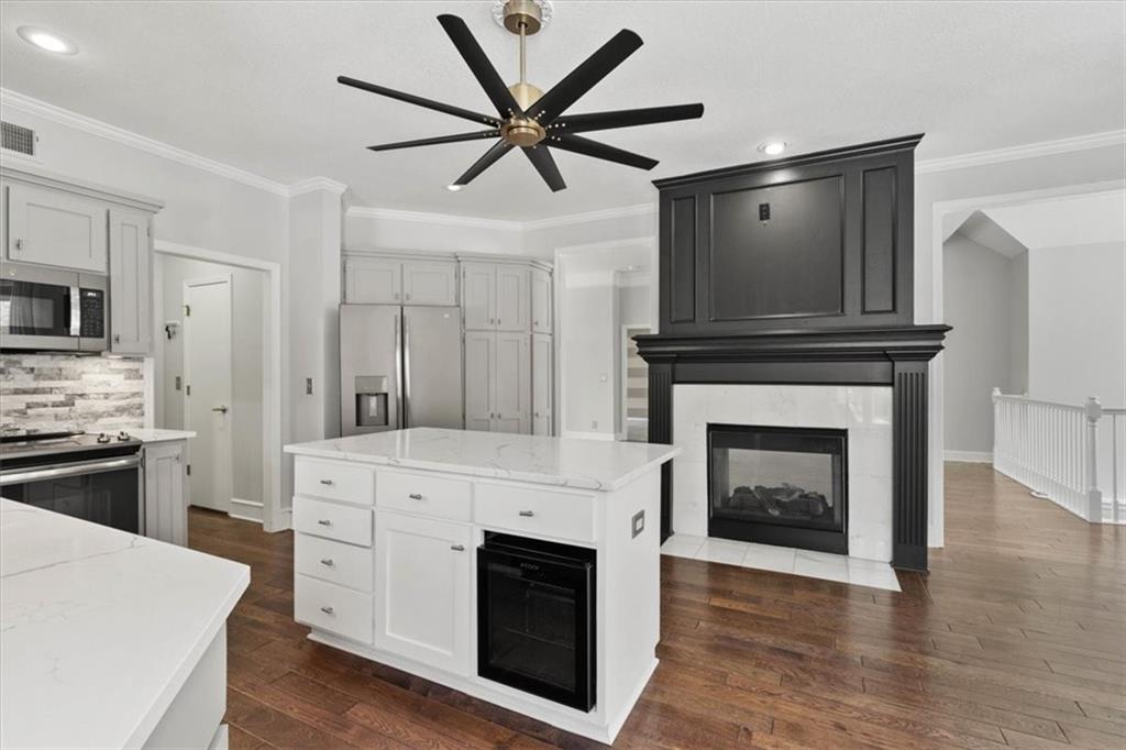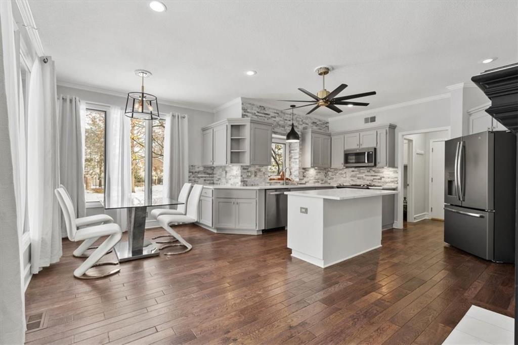 Welcome home to this exceptional reverse 1.5-story stand-alone patio villa on a quiet cul-de-sac in the popular Deer Creek Courts community. This villa offers easy main-level living with soaring ceilings and large windows that bring in abundant natural light. The living room has remote-controlled window coverings and a cozy two-sided fireplace that opens to the kitchen area. The updated eat-in kitchen includes granite countertops, newer appliances, beverage fridge and ample cabinet space. Off the main living area, enjoy the screened-in porch and a private patio surrounded by beautiful landscaping—perfect for relaxing or hosting a gathering. The main-level primary bedroom suite includes an attached bath with a walk-in shower, separate soaking tub, double sinks, and a generous walk-in closet. The finished lower level adds a nice-sized family/rec room, two additional bedrooms, a full bath, and an unfinished storage area with custom shelving. Other features include new living room and kitchen floors, main-level laundry, and a 2-car garage with built-ins. The HOA takes care of mowing, snow removal and trash removal. Great location close to shopping, restaurants, and easy highway access.