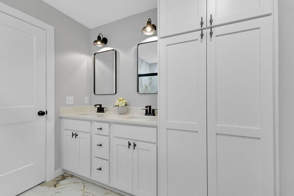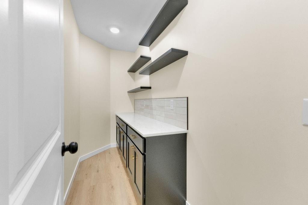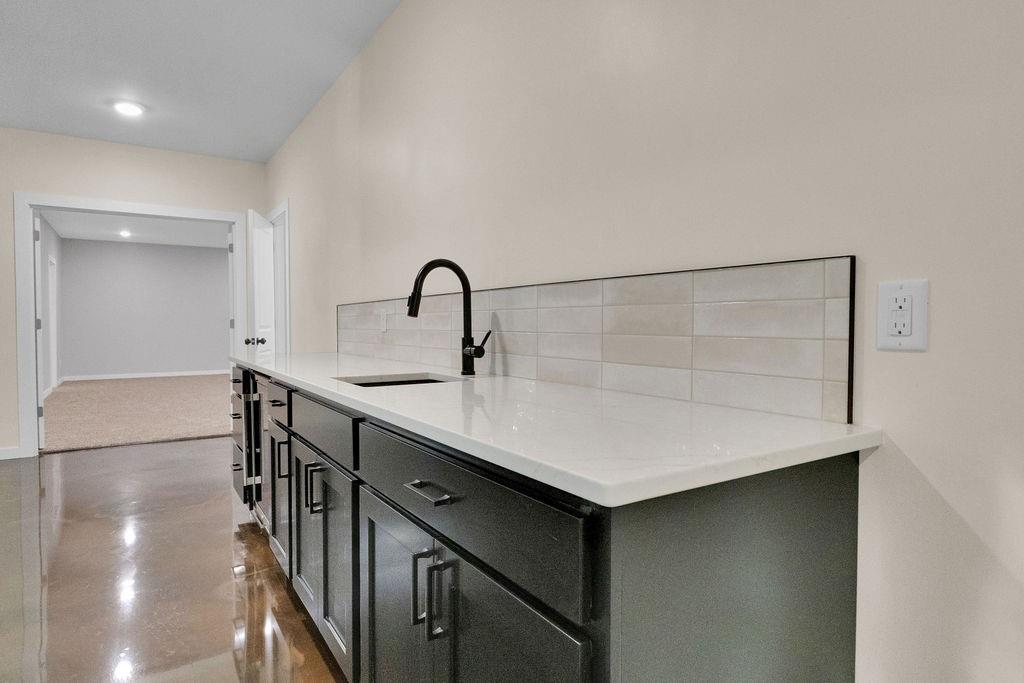 Brand New Modern Luxury Home in a Peaceful, Treed Setting Discover contemporary elegance in this stunning new construction home, nestled in a quiet, tree-lined location. Thoughtfully designed with modern luxury finishes throughout, this residence offers 4 spacious bedrooms and 3 beautifully appointed bathrooms. The heart of the home features an open-concept living area with a gourmet kitchen showcasing quartz countertops, a waterfall island, and premium cabinetry. Plus, a large pantry with shelving and more cabinetry. Enjoy seamless indoor-outdoor living with a large deck off the living room, perfect for relaxing or entertaining while taking in the serene views. High-end details include wide-plank luxury vinyl flooring and cozy carpet on the main level, and a stunning metallic epoxy floor in the finished basement. Wet bar with plenty of cabinet space, quartz counter and a wine fridge add to the already amazing basement recreation room. The media wall upstairs and dedicated theatre room downstairs create ideal spaces for entertainment and family gatherings. The exterior impresses with LP Smart Siding, stone accents, and soffit lighting that highlights the home’s modern curb appeal. Every inch of this home has been crafted for style, comfort, and functionality. There is also a 1 year home warranty offering even more peace of mind to this Brand-New Home! Conveniently located only 7 minutes from the North Shoppes.