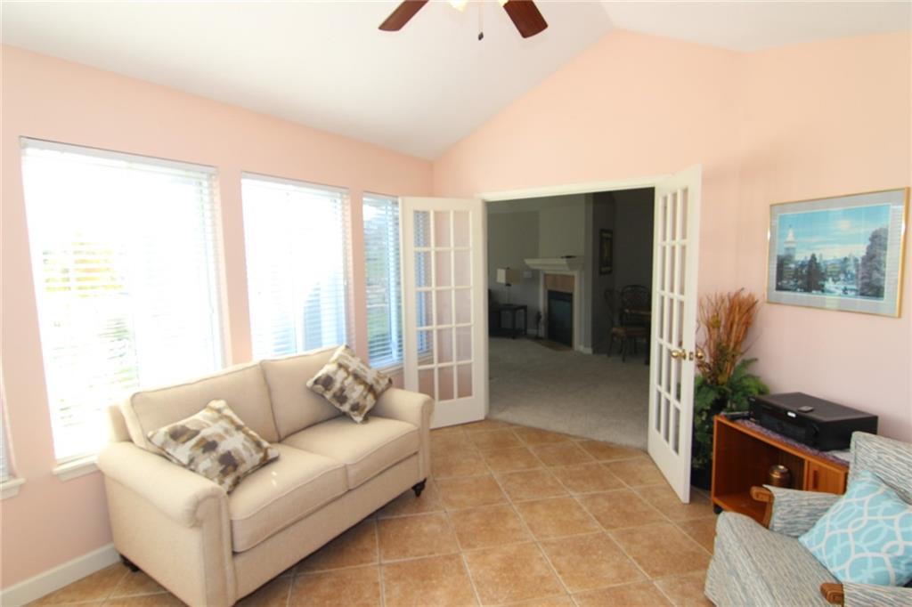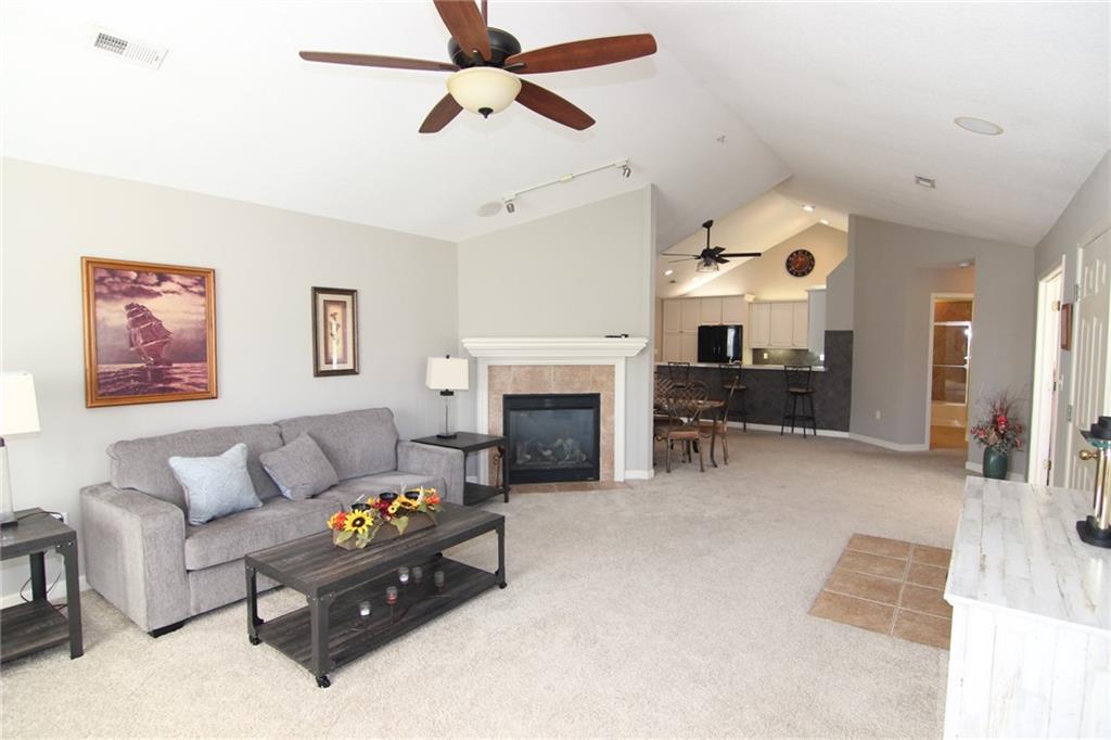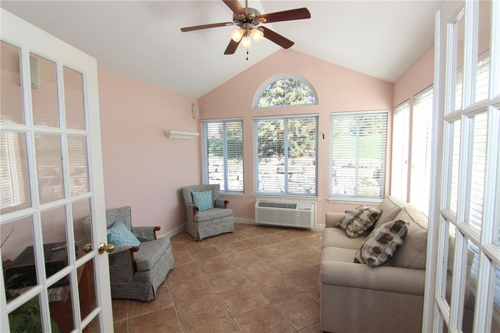 One-Level Living in this Charming Patio Villa! Well maintained 2 bedroom, 2 bath Ranch with vaulted ceilings throughout and a cozy gas fireplace. The kitchen has been updated with beautiful quartz countertops and includes a pantry with pull-out shelving, perfect for keeping things organized and within easy reach! Spacious primary bedroom and bath that includes a double vanity, walk-in closet and walk-in shower with grab bar. You'll love the bright sunroom with its own heating and A/C, perfect for relaxing in any season. Maintenance free so you have time to enjoy all the amenities this community has to offer!