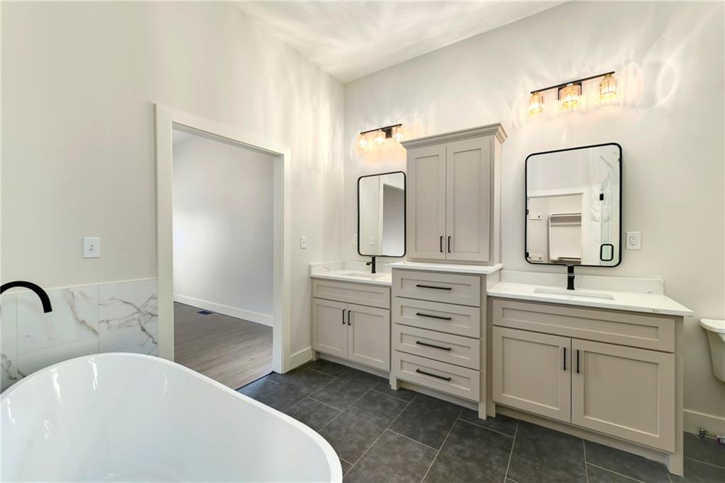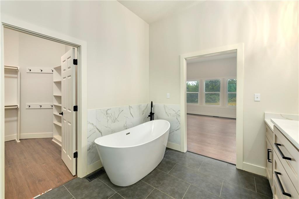 Dreaming of a high-quality lake home for the holidays? Come see The Retreat - a brand new ranch featuring soaring ceilings & stylish high-end finishes throughout with NO corners cut! From the moment you walk in, you'll be awed by the extra tall ceilings & the luxury flooring- there's no carpet here! The huge great room is captivating with dramatic vaulted ceiling, 8-blade ceiling fan, & stone fireplace with sitting hearth. There's a gorgeous kitchen with quartz countertops, herringbone backsplash, tall cabinets, S/S appliances including range hood & refrigerator, a large center island with pendant lighting and a walk-in pantry. The dining space is generously sized and walks out to a covered patio on two sides! The primary suite features a vaulted ceiling, a private en-suite bath with huge glass walk-in shower, dual vanities, & a free-standing soaker tub, plus a huge walk-in closet with built-in dresser. Large secondary bedrooms have ceiling fans & walk-in closets, & share the hall bath which has a gorgeous glass shower & tile floor. The expansive concrete basement with high ceilings & egress well offers future expansion opportunity. With a convenient main-level laundry, windows & closets galore, covered patio & covered front porch, it's clear to see that the builder didn't skimp! This home sits just on a paved road just 2 minutes from the golf course and lake! Linn Valley Lakes is a vibrant, amenity-rich community just 40 minutes south of Overland Park. Enjoy a 135-acre spring-fed lake for boating & jet-skiing, plus 2 additional stocked fishing lakes. Amenities include a golf course, rentable clubhouse with activities, community center with gym, 2 swimming pools, mini golf, basketball and tennis courts, walking trails, playground, fishing dock, boat ramp, campgrounds, shelter houses, swim beach, sand volleyball, horseshoe pit, & more! Don’t miss this incredible opportunity to live at LVL!