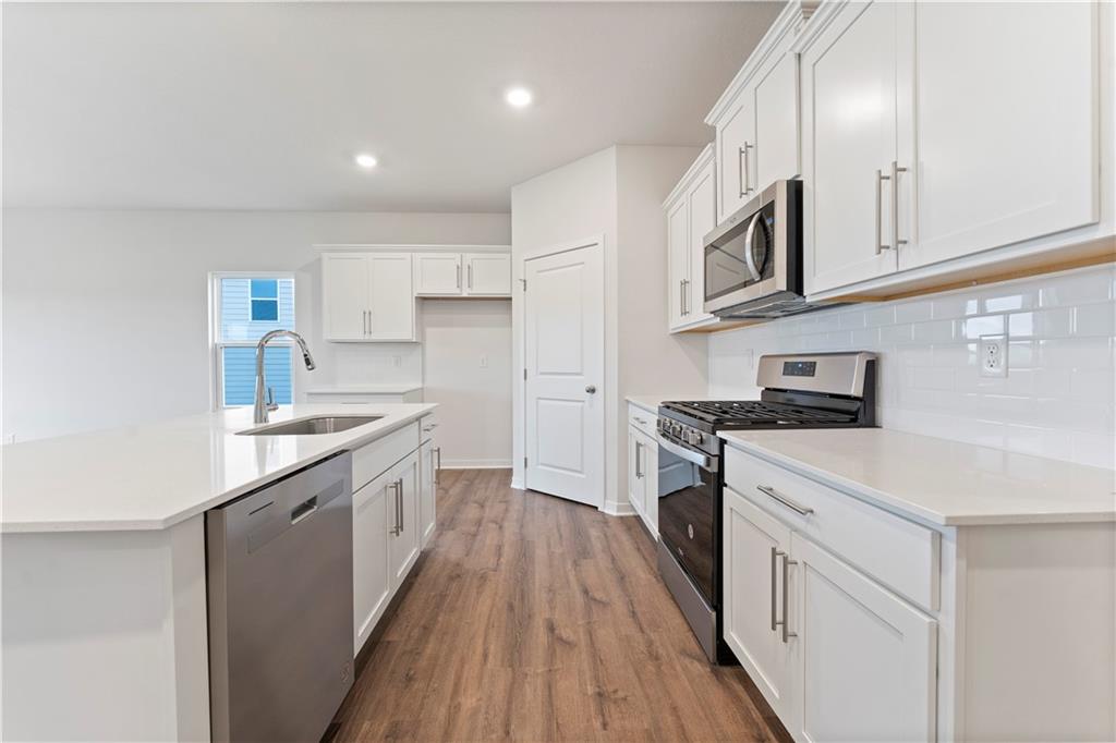 Welcome to Prairie Trace, where modern design meets timeless elegance in this exceptional home crafted by D.R. Horton, “America’s Builder.” This home stands out with James Hardie® siding and stone and shake shingle accents, providing both durability and timeless curb appeal. You'll be greeted with a three-rail, two-panel insulated front door that enhances both curb appeal and energy efficiency. Step inside to find a beautifully appointed interior with 9-foot ceilings that exude sophistication. The chef’s kitchen is the heart of the home, featuring 36-inch painted maple cabinets, quartz countertops, and state-of-the-art Whirlpool® stainless steel appliances. Bathrooms feature quartz-topped vanities and Moen® chrome faucets. The primary bath offers a 5-foot shower with a framed glass enclosure. This home is designed for the future with advanced Smart Home technology, including a Honeywell® Pro Z-Wave® Thermostat, Amazon Echo, and a connected home panel, allowing you to control and monitor your home from anywhere. Energy efficiency is prioritized with LED lighting throughout, a high-efficiency gas furnace, and insulated low E vinyl windows, ensuring comfort and savings year-round. Additional features such as luxury vinyl plank flooring, a spacious garage with opener(s), and detailed wiring solutions like dual data/TV lines in the main bedroom and family room, enhance both convenience and style. D.R. Horton’s commitment to quality is evident in every aspect of this home, offering you a place where luxury, technology, and comfort come together seamlessly. Don’t miss your chance to own this extraordinary home in Prairie Trace. Schedule your private tour today and experience the D.R. Horton difference!