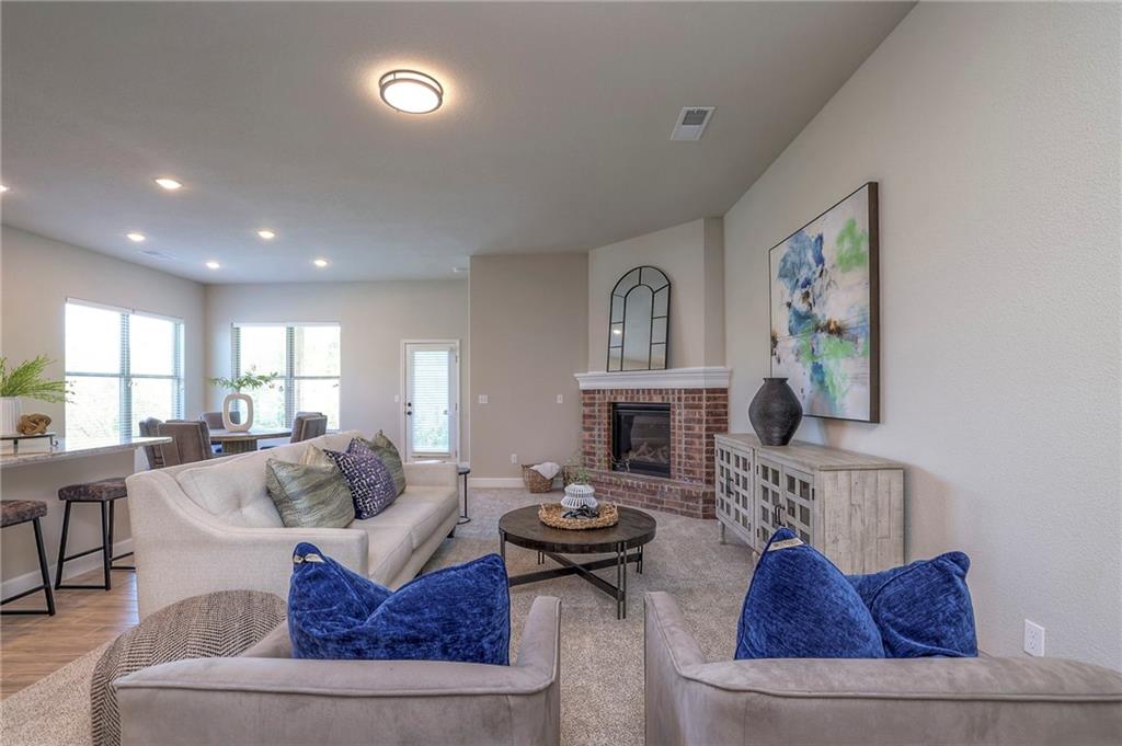 The Joanna is a great plan. She features a picturesque stone and brick exterior with a covered entry. Inside, this home has a corner fireplace and a spacious living area for gatherings. Enjoy a soaker tub, a separate shower, and his and her vanities in the master suite. These photos are a representation of the Joanna. Selections may vary from this home and plans are subject to minor changes. Please schedule an appointment if you have any questions about this home or others.