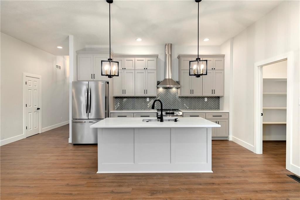 Two high-quality newly constructed 3BR2BA lake homes at Linn Valley Lakes now available! Identical floor plans on side-by-side lots with different design finishes. "The Retreat" ranch plan features soaring ceilings & stylish high-end finishes throughout with NO shortcuts taken! From the moment you enter these homes, you'll be awed by the extra tall ceilings & the luxury flooring-NO carpet here! The huge great rooms are captivating with cathedral vaulted ceiling, 8-blade ceiling fan, & stone fireplace with sitting hearth. The kitchens are gorgeous with quartz countertops, herringbone backsplash, tall cabinets, S/S appliances including range hood & refrigerator, large center island with pendant lighting and a walk-in pantry. The dining spaces are generously sized and walk out to covered patios! The primary suites feature vaulted ceilings, private en-suite bath with huge glass walk-in shower, dual vanities, & free-standing soaker tub, plus huge walk-in closets with built-in dresser. Large secondary bedrooms have ceiling fans & walk-in closets, & share the hall bath with gorgeous glass shower & tile floor. Expansive concrete basements with high ceilings & egress well offers future expansion opportunity. With convenient main-level laundry, windows & closets galore, covered patio & covered front porch, it's clear to see that the builder didn't skimp! Linn Valley Lakes is a vibrant, amenity-rich community just 40 minutes south of Overland Park. Enjoy a 135-acre spring-fed lake for boating & jet-skiing, plus 2 additional stocked fishing lakes. Amenities include a golf course, rentable clubhouse with activities, community center with gym, 2 swimming pools, mini golf, basketball and tennis courts, walking trails, playground, fishing dock, boat ramp, campgrounds, shelter houses, swim beach, sand volleyball, horseshoe pit, & more! Don’t miss this incredible opportunity to live at LVL!