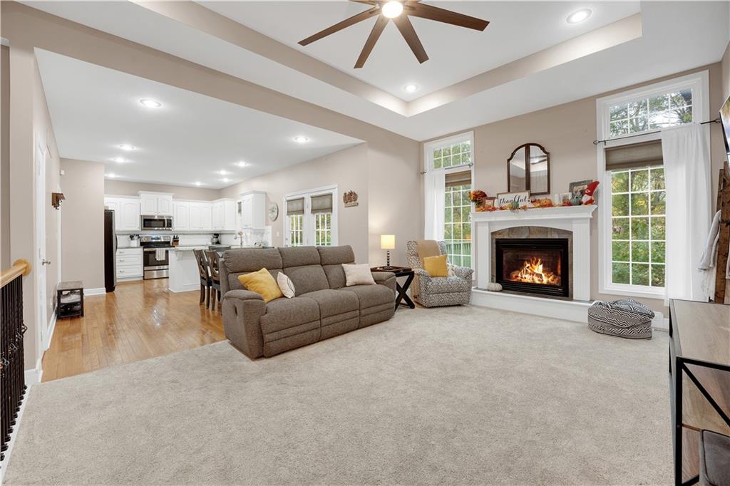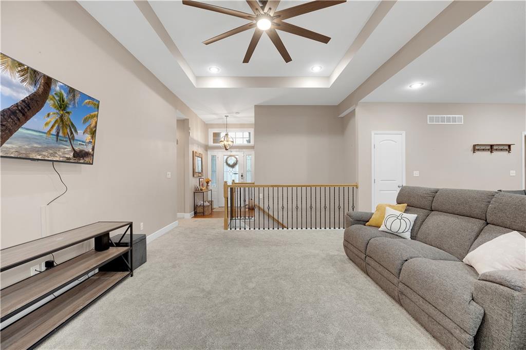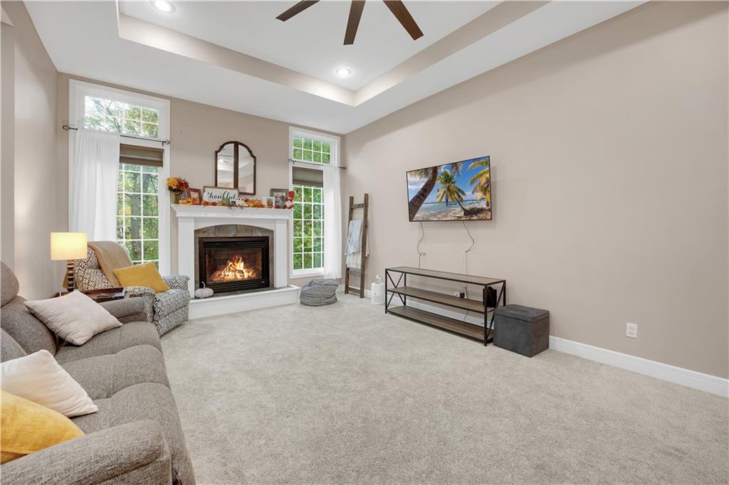 BACK ON MARKET due to personal reasons for the buyer unrelated to the home. Inspection available by request! Welcome to this charming 4-bedroom ranch home nestled in the sought-after Deerfield neighborhood of Warrensburg! Main Level: Two spacious bedrooms, including a large primary suite with a beautiful bathroom and generous closet space. Lower Level: Two additional bedrooms and a spacious recreation area, featuring solid flooring throughout — perfect for entertaining or relaxing. Interior Highlights: Bright white-cabinet kitchen with granite countertops, stainless steel appliances, and solid wood flooring. Enjoy the inviting fireplace, clean carpet, and taller-than-average ceilings that add a sense of openness and charm. Exterior Features: A concrete patio, deck area, fully fenced backyard, and stone-landscaped front entry make this home move-in ready and perfect for gatherings. Don’t miss your chance to see this beautiful, well-kept home in one of Warrensburg’s most popular neighborhoods — schedule your showing today!