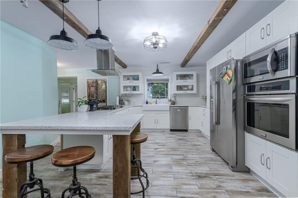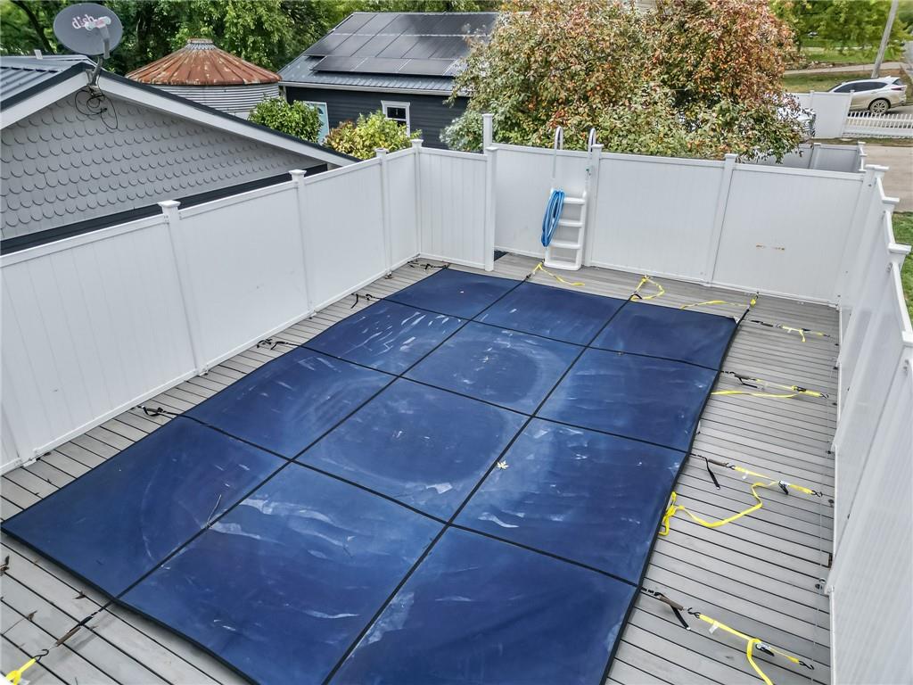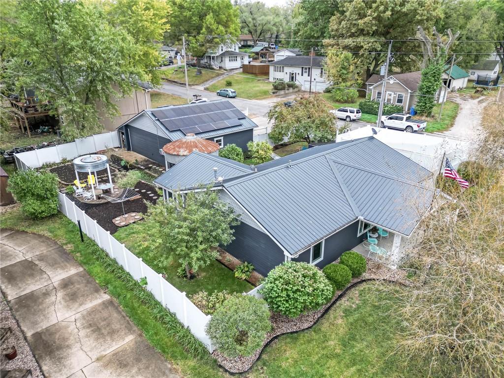 COMPLETELY UPDATED AND MOVE-IN READY, THIS STUNNING 3-BEDROOM RANCH BLENDS MODERN COMFORT WITH SMART, ENERGY-EFFICIENT LIVING! Thoughtfully renovated from the ground up, the home features all-new plumbing, electrical (including a new main line), windows, flooring, kitchen, and baths—plus a new metal roof added last year. With 36 solar panels for low energy costs, this home is as practical as it is beautiful. The bright, open floor plan offers vaulted ceilings, a cozy fireplace in the living room, and a chef’s kitchen with a gas cooktop, built-in appliances, and custom countertops. The primary suite impresses with vaulted ceilings, double vanities, a spacious walk-in shower, and dual walk-in closets. A sunny enclosed porch opens to a private backyard with a gazebo, garden space, and an above-ground pool with a new liner—perfect for summer relaxation. The detached garage provides extra storage with an upstairs loft, all on a well-maintained corner lot with privacy fencing and a convenient location close to everything.