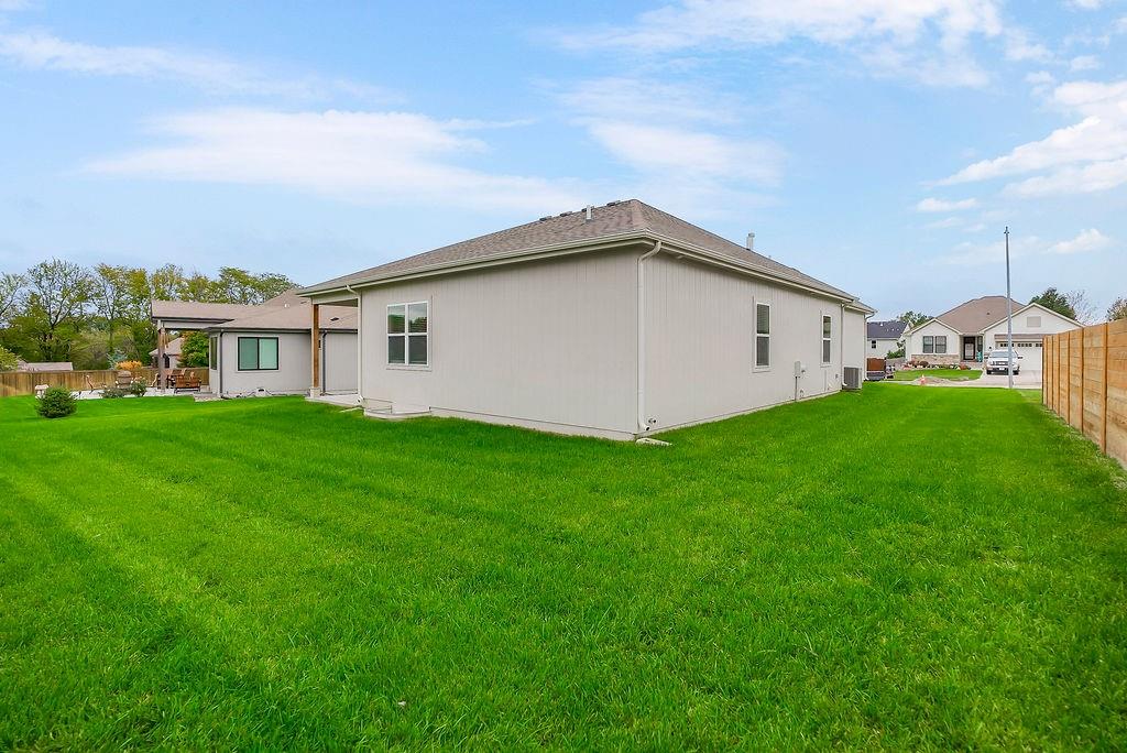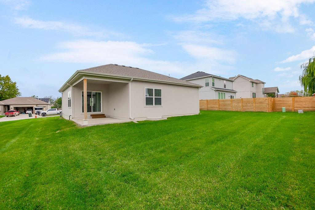 Beautiful new build in desirable Hidden Creek subdivision. This open-concept ranch home has 3 bedrooms, 2 full bathrooms, and all living on the main floor. Kitchen has plenty of storage, large island, pantry, and quartz counter tops. Spacious bedrooms and closets with built-in shelving. Bathrooms are tastefully finished with tile showers, high end fixtures, and glass shower enclosure. FULL basement with egress window and stubbed for bathroom just waiting for your finishing touches. Landscaped with sod, mulching, and shrubbery. Covered porches in front and back. Window blinds installed.