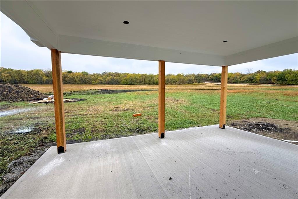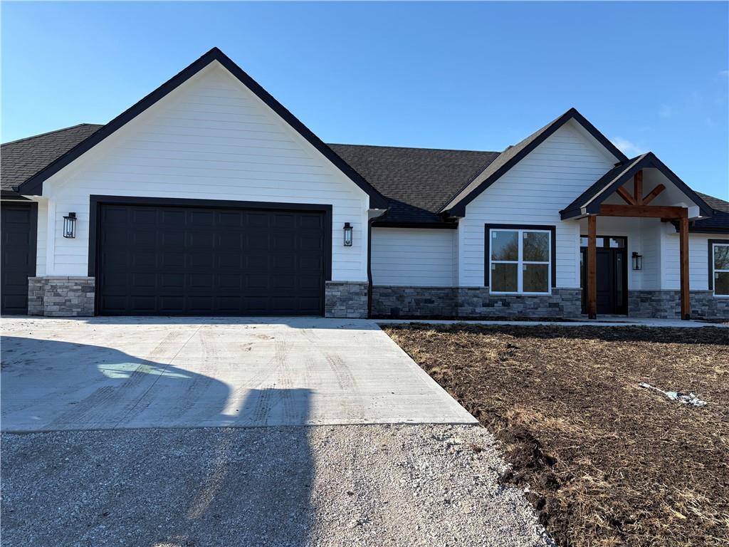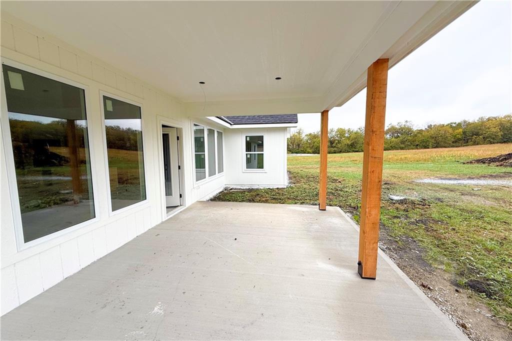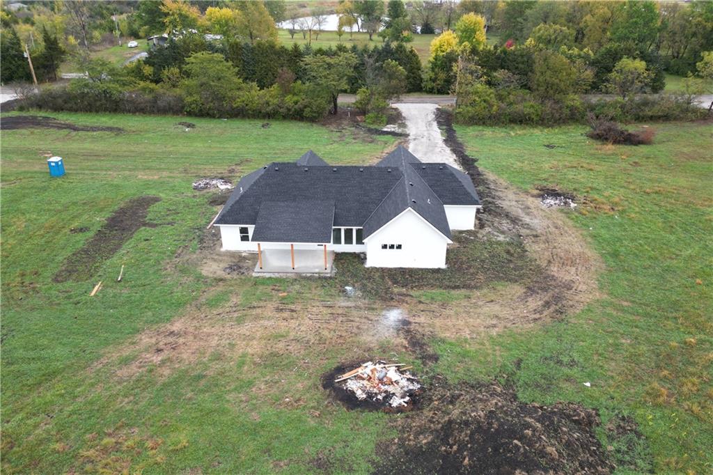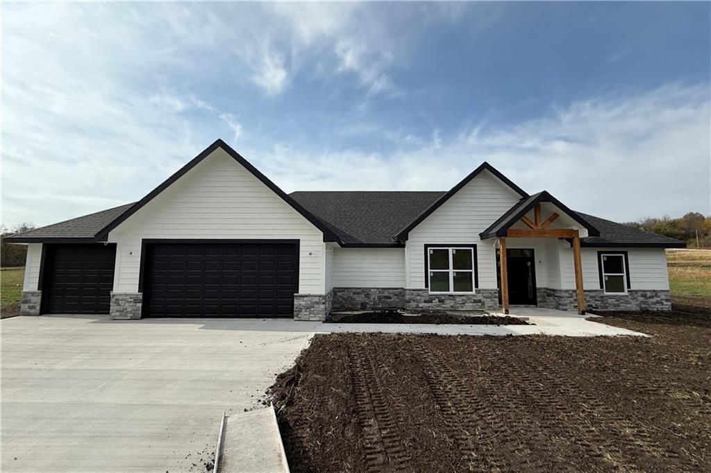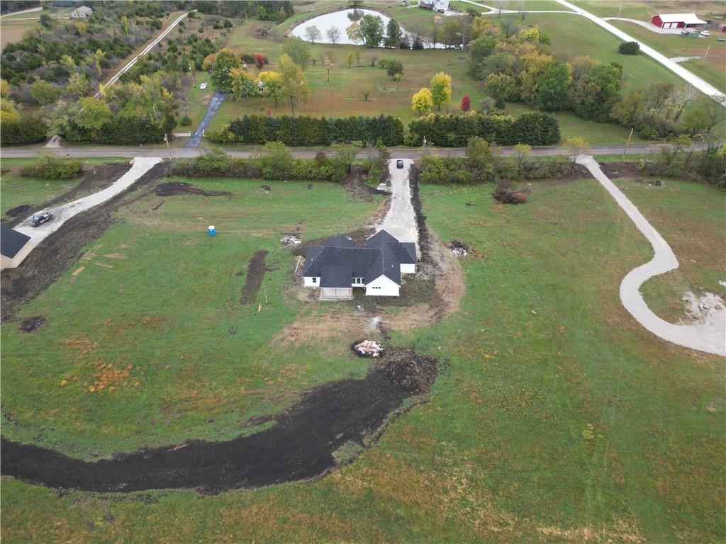 Brand-New Ranch on 5.03 Acres – Ready Mid-December! Experience the perfect blend of peaceful country living and modern comfort in this brand-new ranch home, nestled on 5.03 acres just 1.5 miles off Hwy 50, right next to Powell Gardens. Step inside to a spacious Great Room featuring a vaulted ceiling, electric fireplace, and abundant natural light. The kitchen shines with granite countertops, a center island, ample cabinetry, and a walk-in pantry—ideal for everyday living or entertaining. Off the pantry is a built-in storm shelter for peace of mind! Your primary suite offers a touch of luxury with a tray ceiling, double vanities, walk-in shower, and private commode room. The huge walk-in closet connects directly to the laundry room for added convenience. Additional bedrooms and a full bath with a tub/shower combo complete the layout. You'll love the covered back patio overlooking gorgeous acreage views—perfect for your morning coffee or evening unwind. Located on a chip-and-seal access road, this home combines rural tranquility with quick highway access—making it a dream spot for commuters!