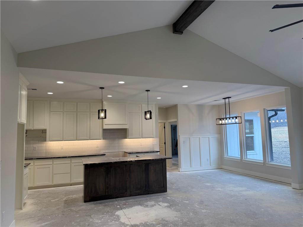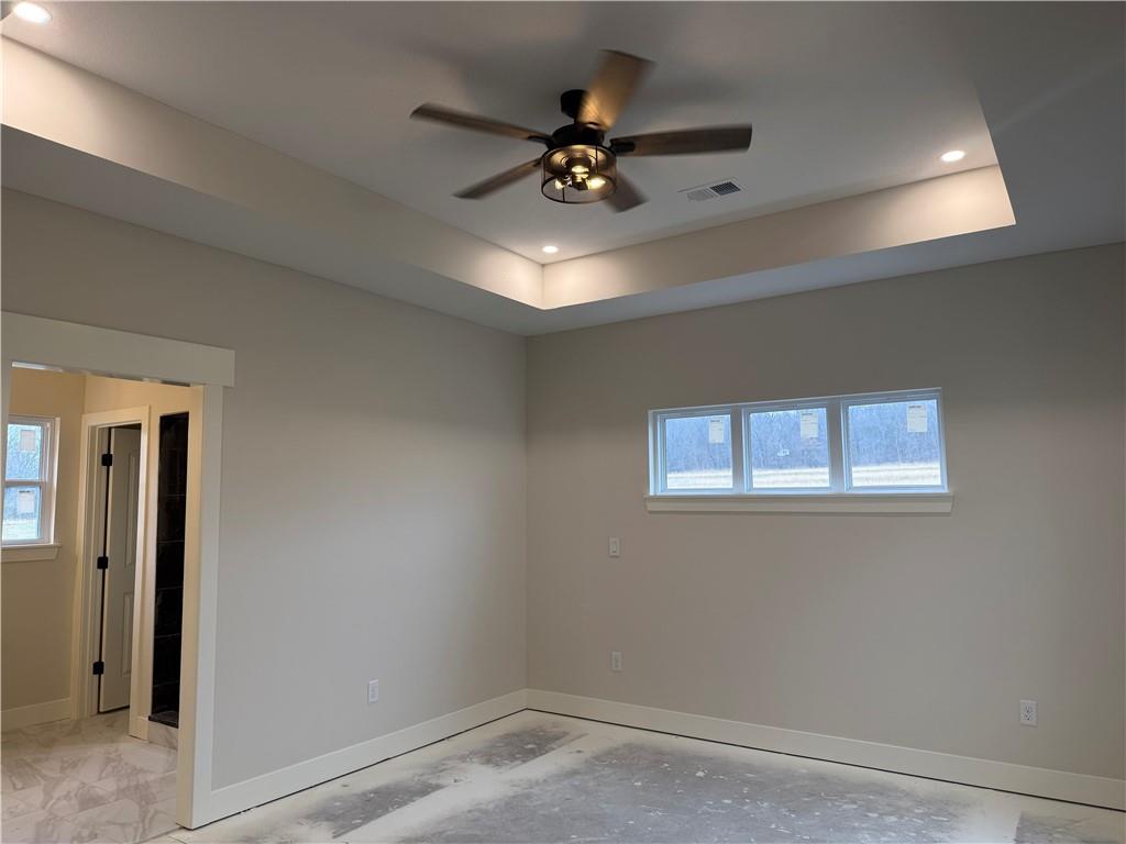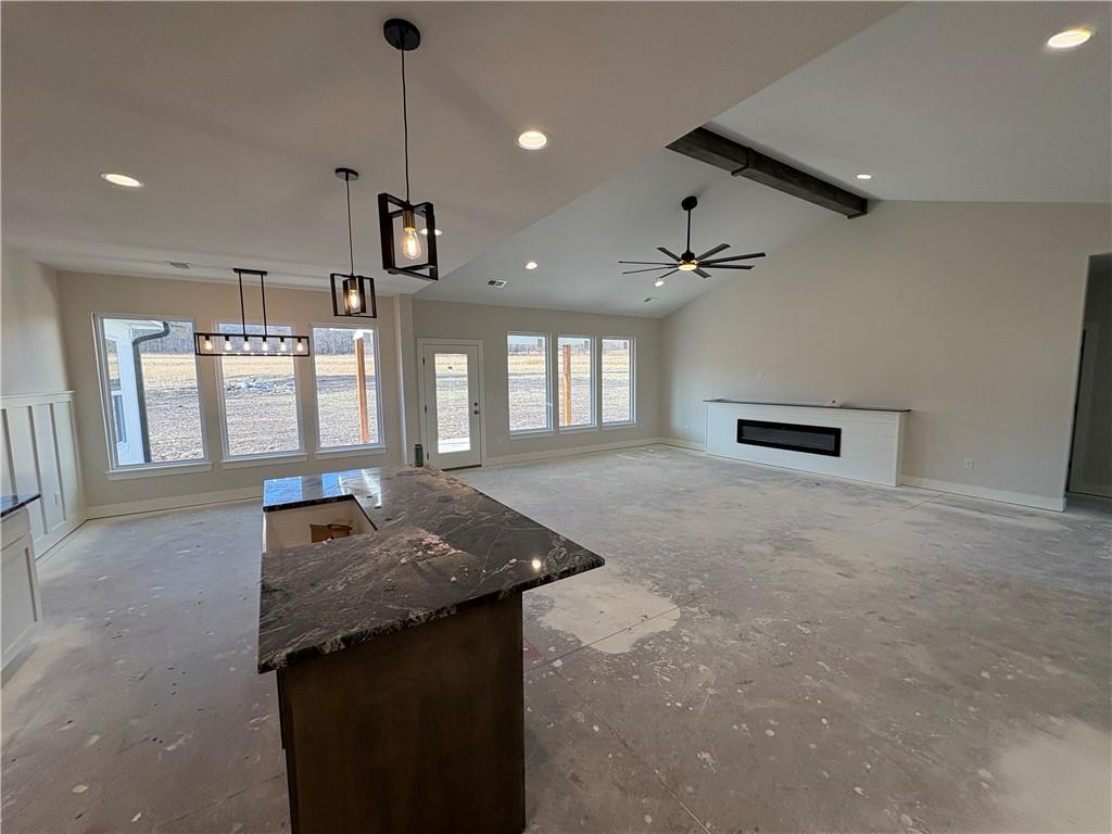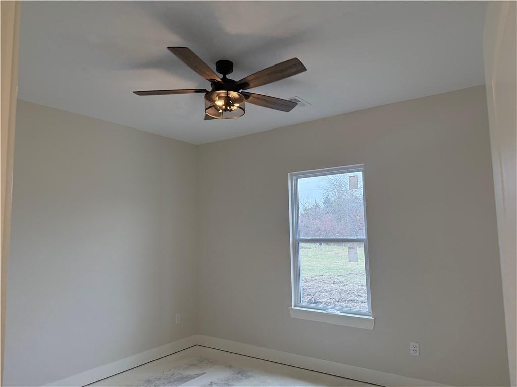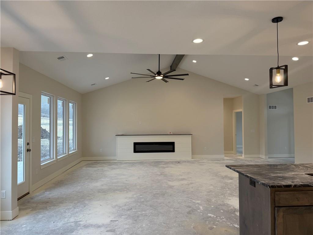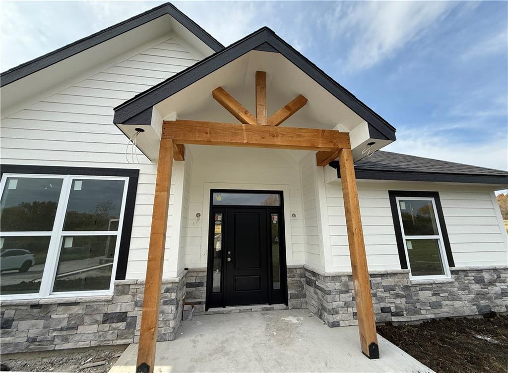 Brand-New Ranch on 5.03 Acres – Ready Mid-December! Experience the perfect blend of peaceful country living and modern comfort in this brand-new ranch home, nestled on 5.03 acres just 1.5 miles off Hwy 50, right next to Powell Gardens. Step inside to a spacious Great Room featuring a vaulted ceiling, electric fireplace, and abundant natural light. The kitchen shines with granite countertops, a center island, ample cabinetry, and a walk-in pantry—ideal for everyday living or entertaining. Off the pantry is a built-in storm shelter for peace of mind! Your primary suite offers a touch of luxury with a tray ceiling, double vanities, walk-in shower, and private commode room. The huge walk-in closet connects directly to the laundry room for added convenience. Additional bedrooms and a full bath with a tub/shower combo complete the layout. You'll love the covered back patio overlooking gorgeous acreage views—perfect for your morning coffee or evening unwind. Located on a chip-and-seal access road, this home combines rural tranquility with quick highway access—making it a dream spot for commuters!