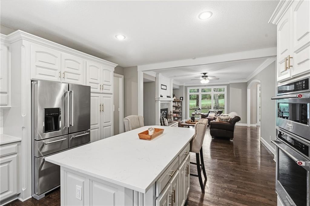Rare greenside residence overlooking the 16th green, offering sweeping views, refined interiors, and a seamless indoor-outdoor lifestyle. A premier opportunity for elevated golf-course living in one of the community’s most desirable locations. Experience refined living in this beautifully updated 1.5-story, 5-bedroom, 5.5-bath home situated on a premier golf course. Designed for comfort and sophistication, this residence features two spacious primary suites, each with its own private ensuite bathroom—ideal for guests or multi-generational living. An inviting open floor plan showcases modern updates, abundant natural light, and seamless indoor-outdoor living. The gourmet kitchen boasts high-end finishes and flows effortlessly into the dining and living areas—perfect for entertaining. Step outside to enjoy stunning golf course views from the private patio, ideal for morning coffee or evening gatherings. Additionally there is a fully equipped basement kitchen that adds exceptional convenience for entertaining or extended stays. Combining luxury, function, and warmth, this gorgeous 1.5-story home offers an exceptional opportunity for elegant golf course living.