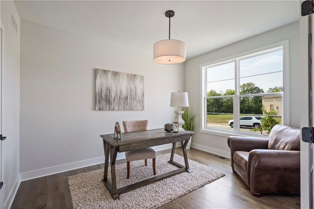 MODEL HOME - NOT FOR SALE***The Haley by New Mark Homes***This stunning 1.5 Story plan on lot 80 at Bristol Highlands Manors is uniquely designed to create the feeling of first floor living while still being functional. The Haley is designed with a very open entrance appealing to all. The back staircase is tucked away giving the appearance of hidden living quarters upstairs. First floor flex room with double doors makes the ideal home office. The large upstairs loft creates a second living space & every bedroom has its own private bath! Life at Bristol Highlands hits different with sunset strolls, high country views, weekend adventures at Shawnee Mission Park and Lake Lenexa, Restaurant Row minutes away at Lenexa’s City Center. The future resort-style pool, sport courts, and clubhouse, etc. are creating a buzz—and we haven’t even mentioned the award-winning De Soto schools (hello, Mill Valley!). These early-phase homes are moving fast and won’t last long. This is your “let’s go for it” moment—come see what life looks like in a brand new luxury home today! Open Daily.