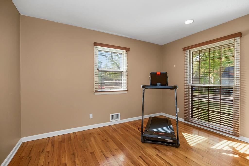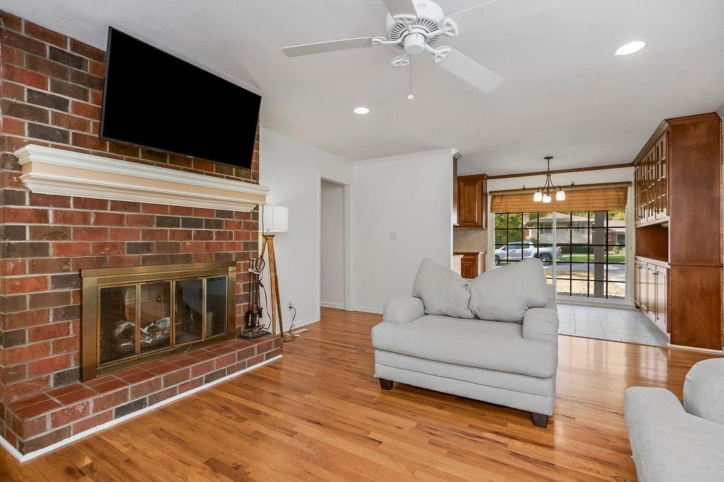 Beautiful ranch home nestled on a quiet, tree-lined street within easy walking distance to the elementary school and community pool! Featuring hardwood and tile floors, a kitchen with custom cabinetry, under-cabinet lighting, and plenty of counter space. Beautiful double-sided fireplace shared between the living room and dining. Enjoy outdoor living on the patio overlooking a large, shaded backyard. The full walk-out basement and double car garage provide ample parking and workspace. A perfect blend of charm, comfort, and convenience! Home is being sold as-is.