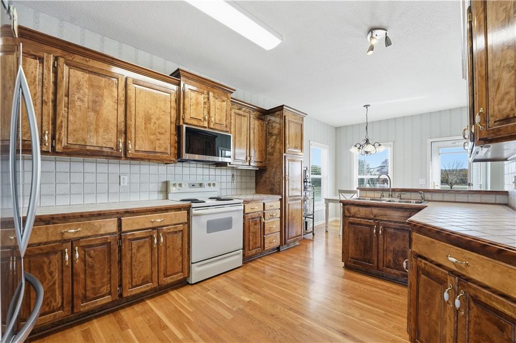 Welcome to easy living in Woodland Farms! This Reverse 1.5 story home sits on an oversized lot with no back neighbors—your own slice of peace and privacy. Inside, you’ll love the rich hardwood floors, soaring vaulted ceilings, and sunlight streaming through picture windows. Cozy up by the gas fireplace or gather in the ultra-functional kitchen—perfect for everyday living or casual entertaining. Plus, the formal dining room easily doubles as an office or play room. The primary suite feels just like home with its spacious bedroom, roomy walk-in closet, jetted soaking tub, and separate shower. A large secondary bedroom, full bath, laundry room, and a generous 3-car garage round out the convenient main level. Downstairs, enjoy a walk-out family room with newly refinished epoxy floors, two additional bedrooms, a full bath, and an unbelievable amount of storage space. Step outside to your huge composite deck overlooking a beautifully fenced, private backyard—ideal for morning coffee, evening BBQs, or just soaking up the quiet. With a brand-new roof, nearby top-rated schools, and a prime Shawnee location close to shopping, dining, and highways—life here truly couldn’t be easier.