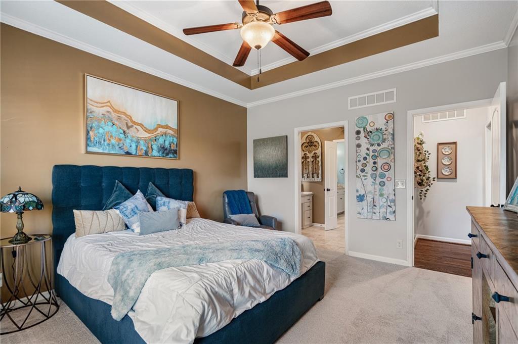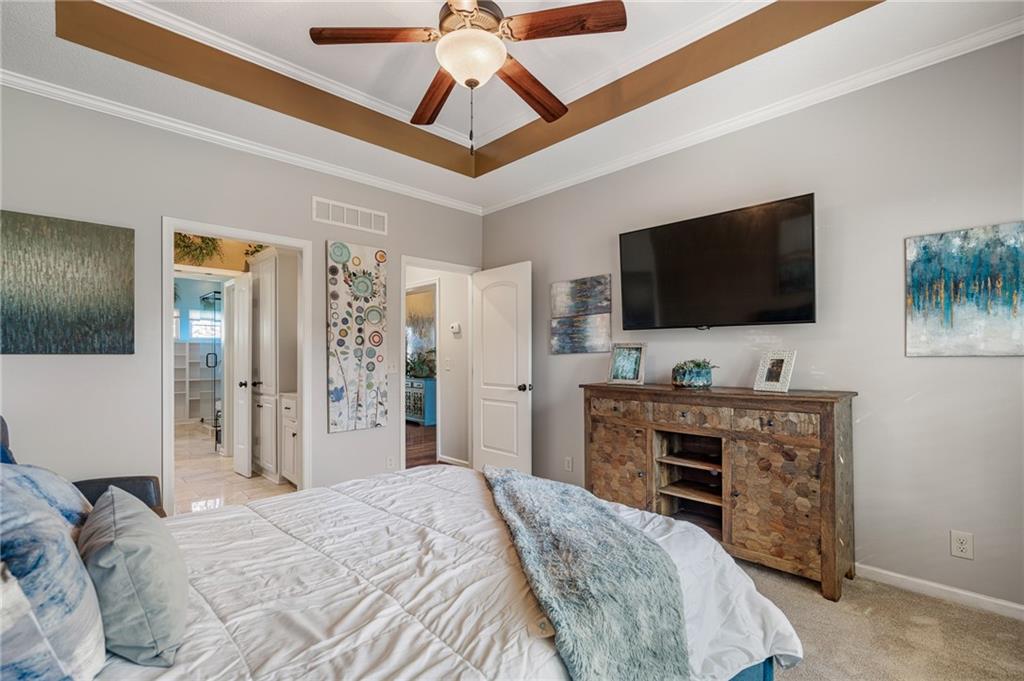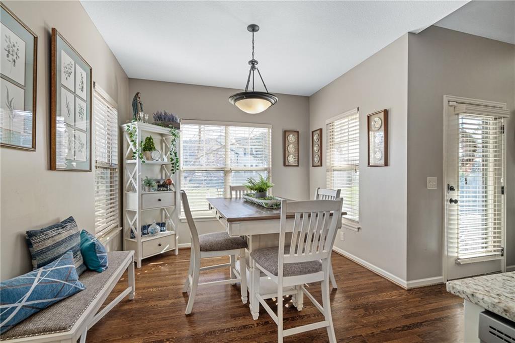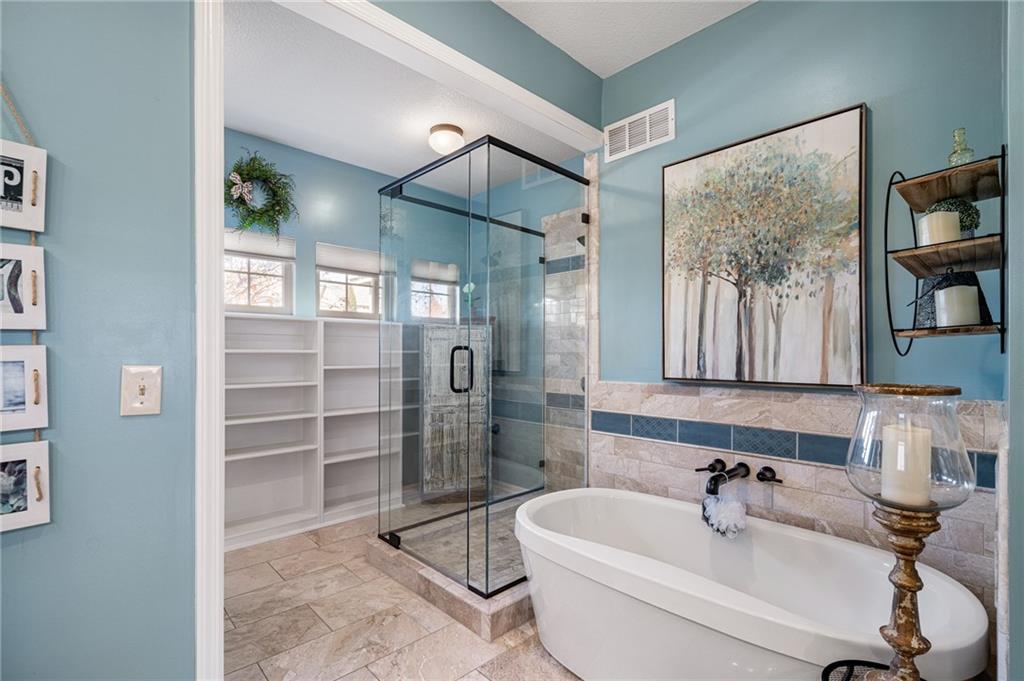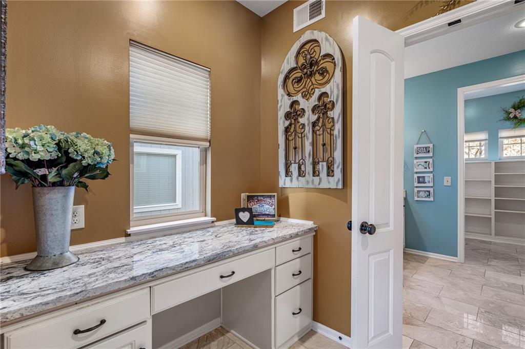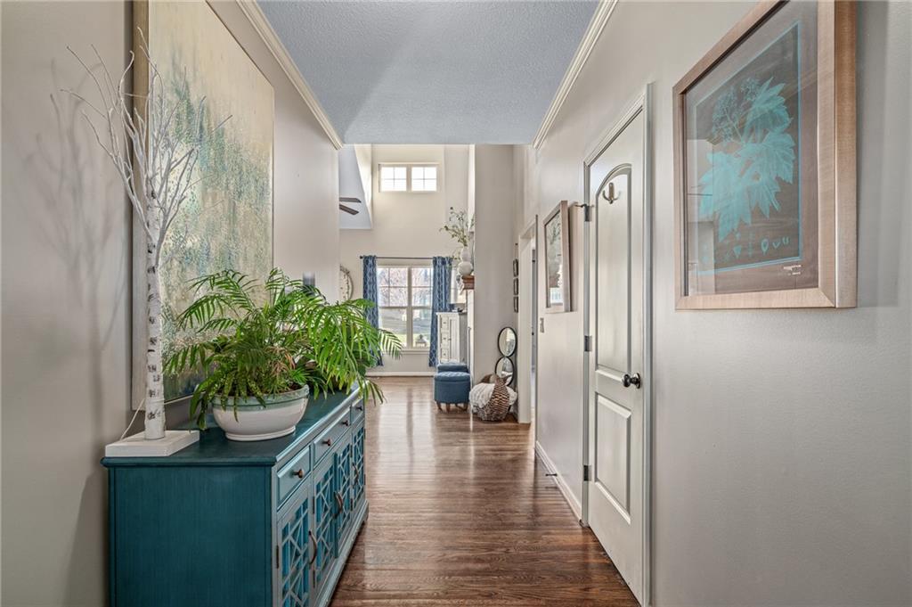 Welcome Home to Comfort, Style & Effortless Living! This stunning 3-bedroom, 2.5-bath Home delivers that “ahhh” feeling from the moment you walk in. You’ll instantly notice the vaulted ceilings, gleaming hardwood floors, and the cozy gas fireplace that anchors the living room—perfect for curling up with coffee or your favorite Kansas City Chiefs game. Step into the modern kitchen featuring granite countertops, a spacious island, and a sun-drenched dining area surrounded by windows—because every meal deserves a little natural light! The primary suite is your own private retreat, new carpet now with a redesigned spa-worthy bathroom showcasing a roomy glass-enclosed shower, soaking tub, elegant vanity area, and large walk-in closet for all your wardrobe wins. Downstairs, discover two more spacious bedrooms—each with its own walk-in closet—connected by a Jack & Jill bathroom with double vanities, ideal for guests or family. Enjoy peaceful neighborhood views and trails just outside your door. This Home blends low-maintenance living with high-style comfort, offering the perfect balance between convenience and luxury. Amenities are all the 4 pools, tennis courts, pickleball courts ,trails, and amenities of the Stonebridge Area! So go ahead—unpack, relax, and start loving where you live!