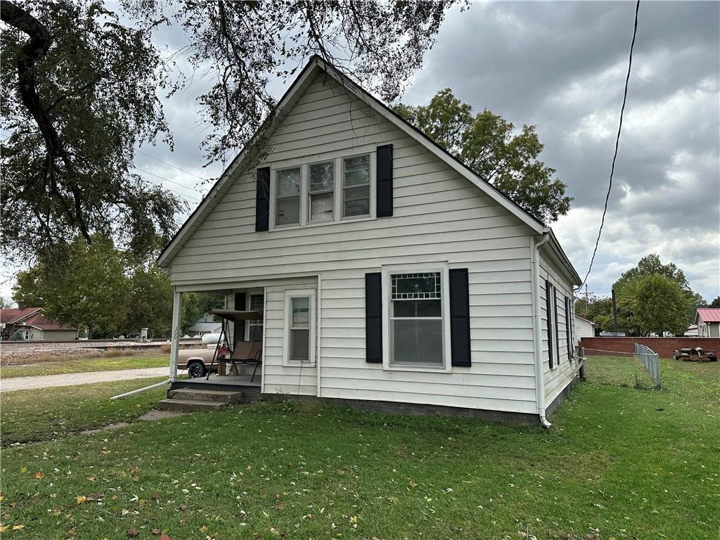 Cute starter home in the quaint farming community of Hardin! Located a straight shot, 40 minute drive from Kansas City, this home offers convenience and affordability. Home features a large main level primary bedroom and main level bathroom and laundry and more. Detach garage has concrete floors and electric.